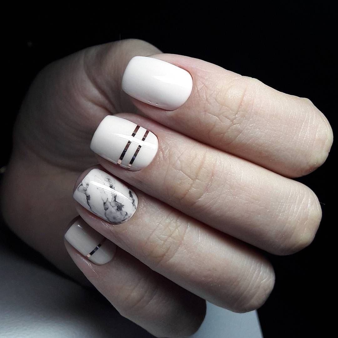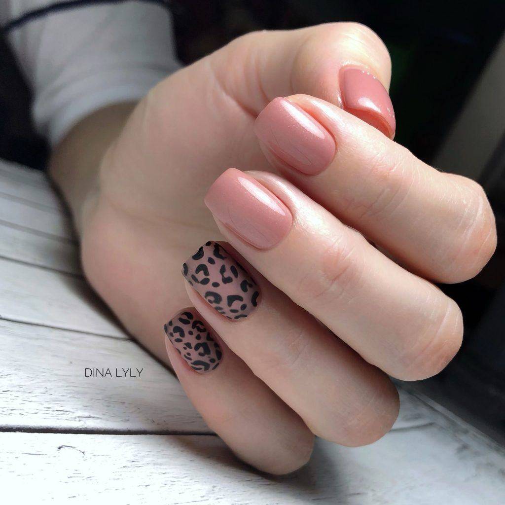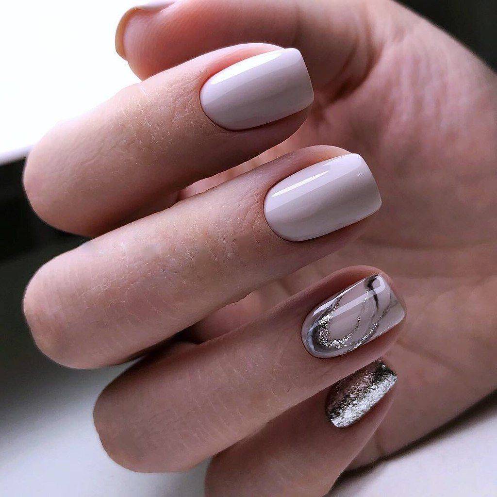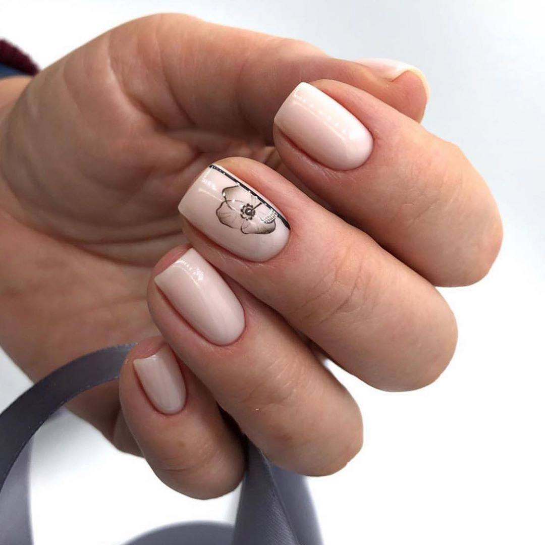 Очень ухоженно и аккуратно на ногтях с квадратной формой, смотрится маникюр всех телесных “нюд” оттенков. Если вы ищете способ разнообразить приевшийся одноцветный нейл-арт, попробуйте сделать акцент на безымянном пальце или покрыть несколько ноготков геометрическим узором.