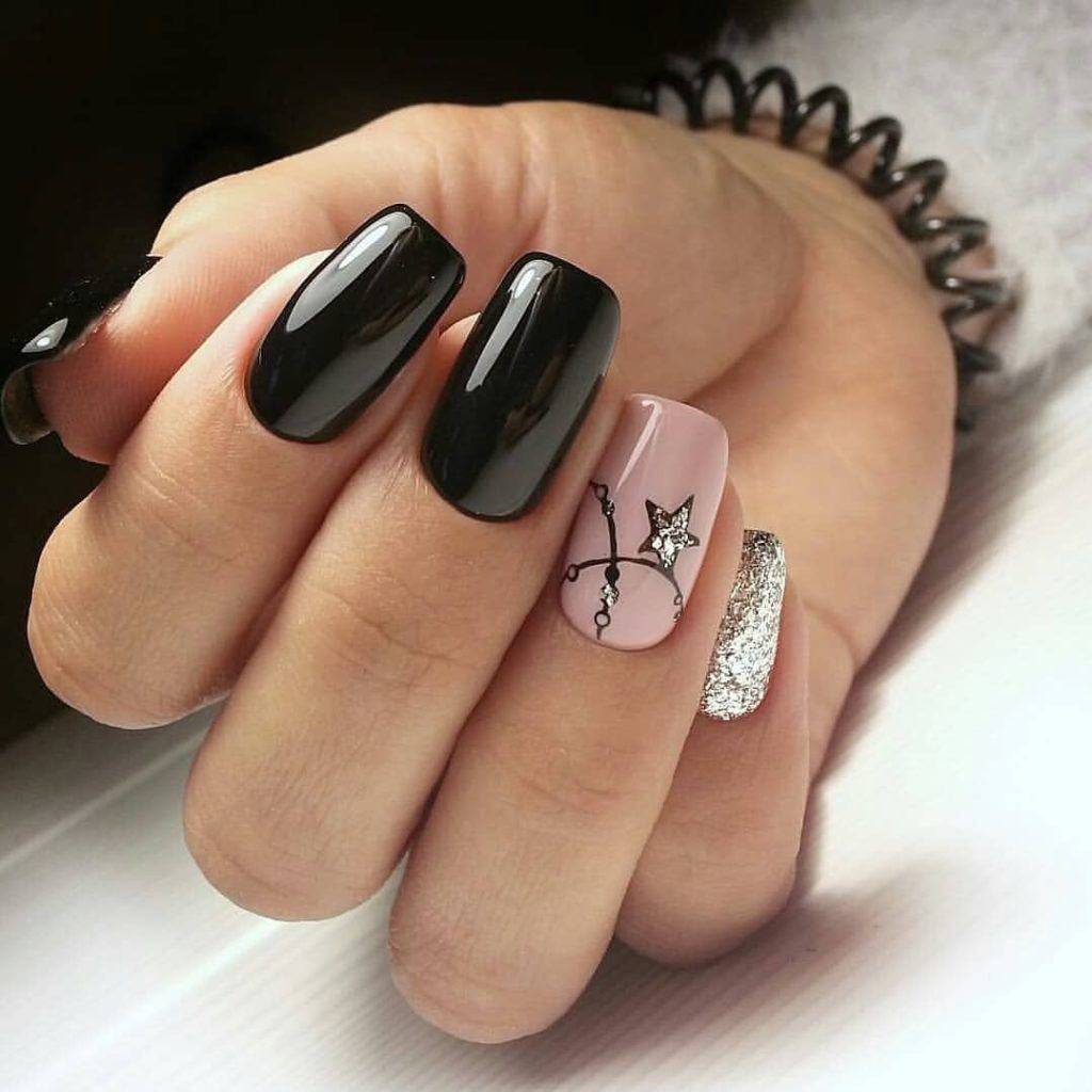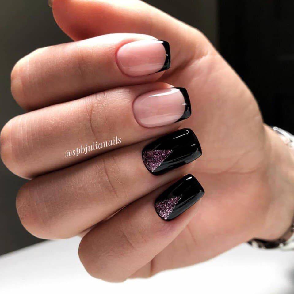 Сегодня маникюр с блестками — это уже давно не праздничный маникюр, а очень даже и повседневный. Существует много разных вариантов дизайна маникюра с блестками на квадратную форму ногтей и в светлых и в темных тонах.