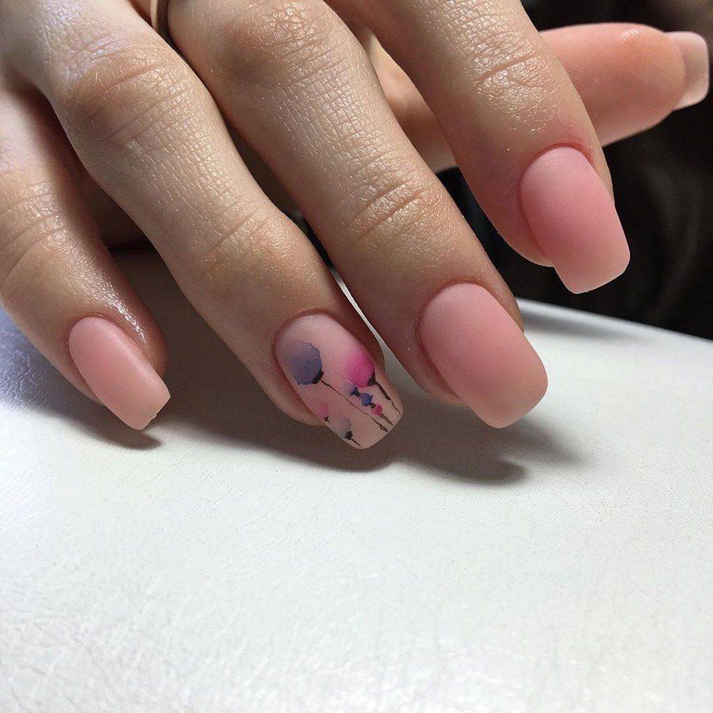 Матовое покрытие полюбилось многим девушкам, и в 2020 году оно будет в топе нейл-искусства. На квадратных ногтях матовый маникюр смотрится очень стильно и красиво, будь то в нюдовых тонах, или насыщенных темных. Матовый маникюр шикарно сочетается с блестками, стразами, «слезами единорога», маникюром в стиле геометрия, минимализм, негативное пространство. Матовый маникюр хорошо смотрится и на коротких ногтях и на длинных.