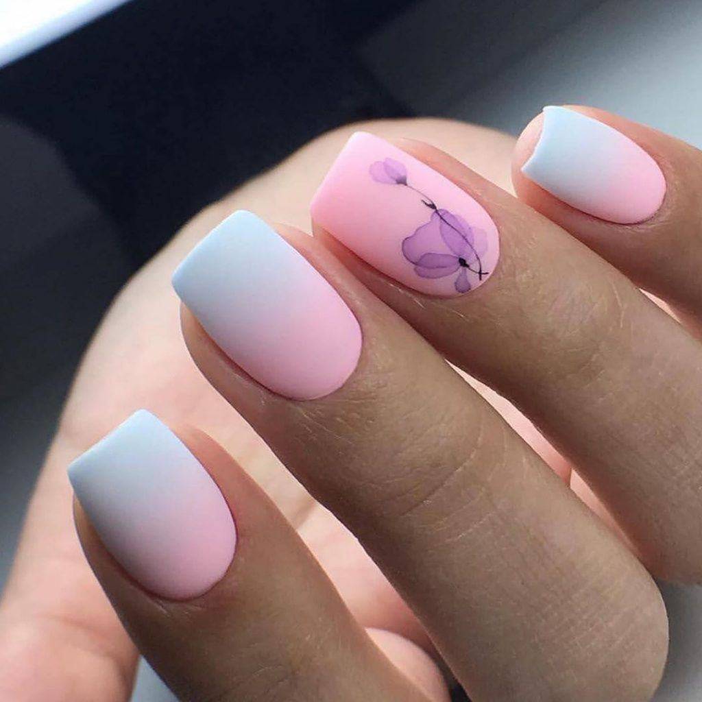 - Очень необычно омбре выглядит в матовом маникюре с дизайном.