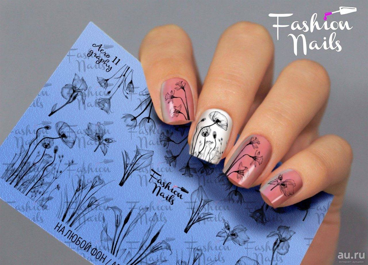 - слайдеры – выручают при создании летнего маникюра. Выполните декор на 1-2 акцентных ноготках, остальные ноготки покройте однотонным ярким гель-лаком.