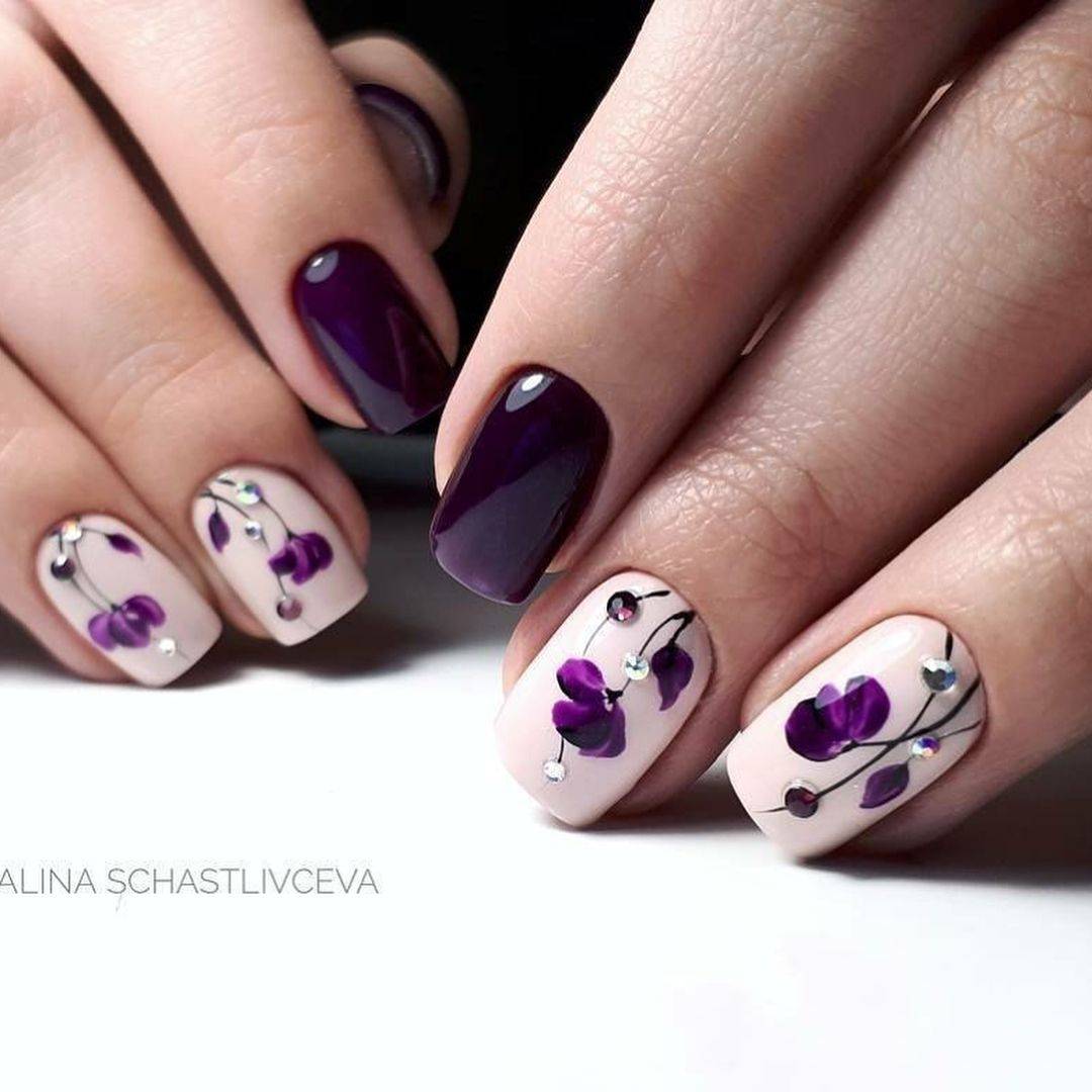 Комбинирование цветов и фактур лака придаст еще больше эффектности маникюру на квадратную форму ногтей. Например, комбинация темных оттенков лаков и блесток никогда не выходит из моды. А также сочетание матовых текстур с глянцевыми. Матовый маникюр шикарно смотрится в палитре глубоких темных оттенков, его можно комбинировать с разными вариациями рисунка и дизайна, сочетая между собой несколько оттенков лака.