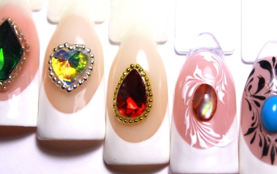 - Пластиковые камушки для ноготков, это совсем не редкость. Стоимость таких украшений очень низкая, но и срок службы их ограничивается одним-тремя использованиями.
