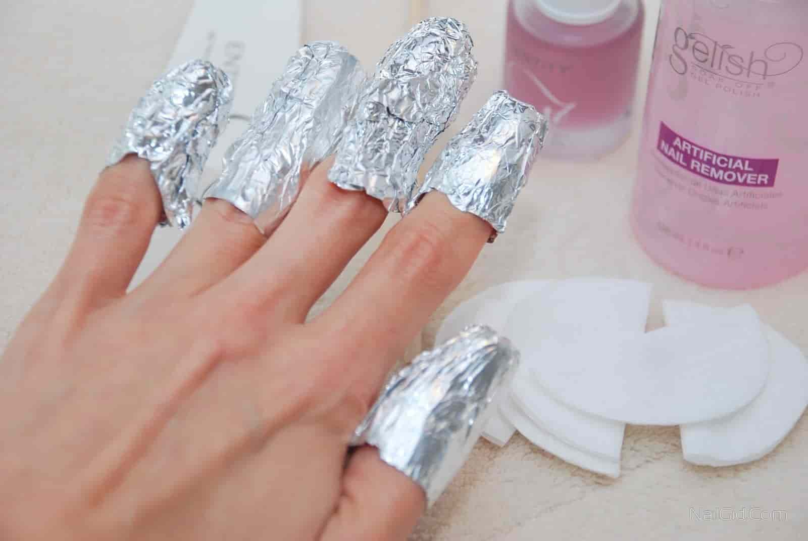 Сверху покрыть ногти фольгой в несколько слоев, чтобы ацетон не выветрился.