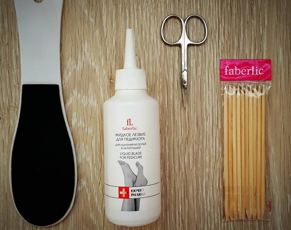 Некоторые производители предлагают жидкие лезвия, которые продаются в комплекте с питательным кремом и средством для дезинфекции стоп, ведь эти вещества всегда нужно использовать при проведении данной процедуры. Подготовив все эти препараты, можно переходить к обработке ног данным средством в домашних условиях