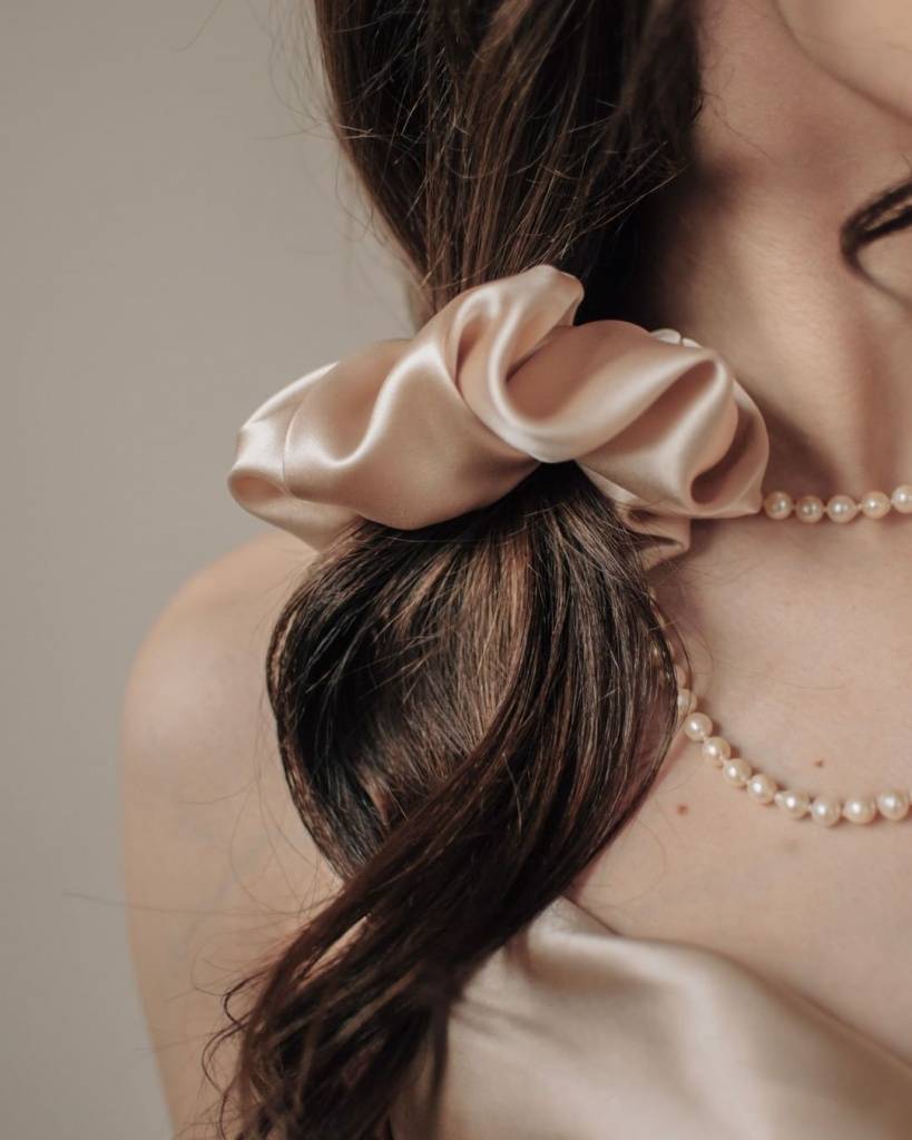 Мягкие текстильные резинки-скранчи и шпильки различных размеров и форм осуществили громкий камбэк и не спешат никуда исчезать. Если аксессуары, которые вы носили в школе, кажутся вам слишком несерьезными, подберите им изысканную «взрослую» альтернативу. К примеру, шелковую резинку или гребень с малахитовым декором.