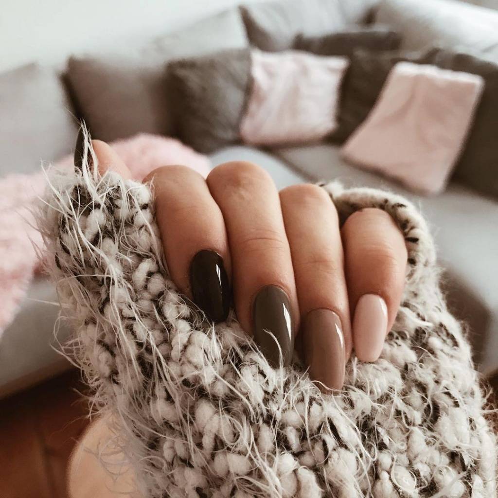 Инфлюенсеры выбирают ириски. Только не в виде молочных конфет, а в варианте оттенка лака: в моду вошли toffee nails. Маникюр в кофейно-сливочных тонах стал популярным благодаря известному мастеру Тому Бачику, среди клиентов которого Селена Гомес, Ким Кардашиан и Марго Робби. Именно этот вариант покрытия уже называют «новым черным», то есть таким, который подойдет практически подо все. Начните с классического варианта toffee nails — покройте ногти пятью оттенками коричневого лака — от шоколадного до цвета топленого молока. Дальше можно начать придумывать свои вариации.