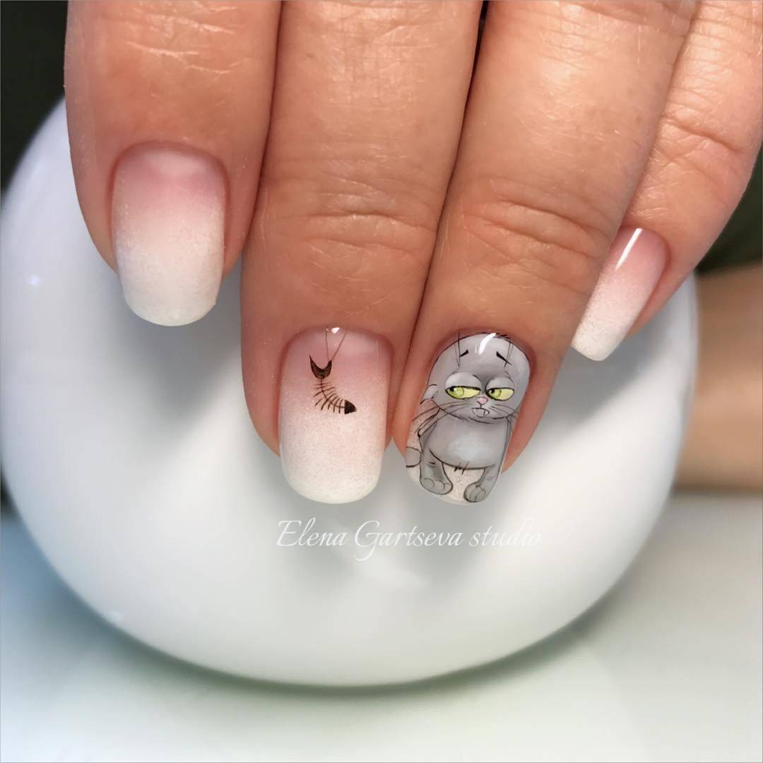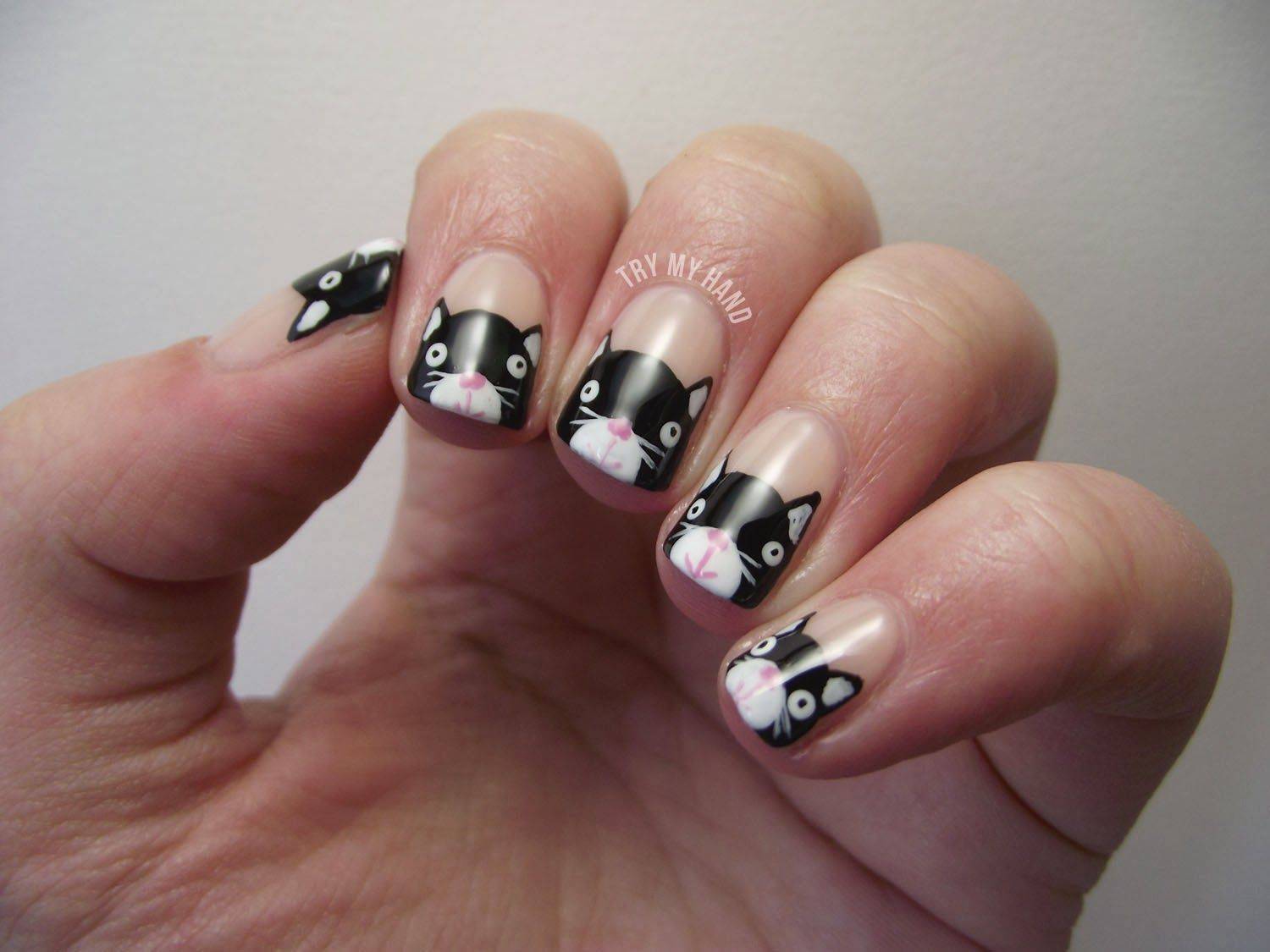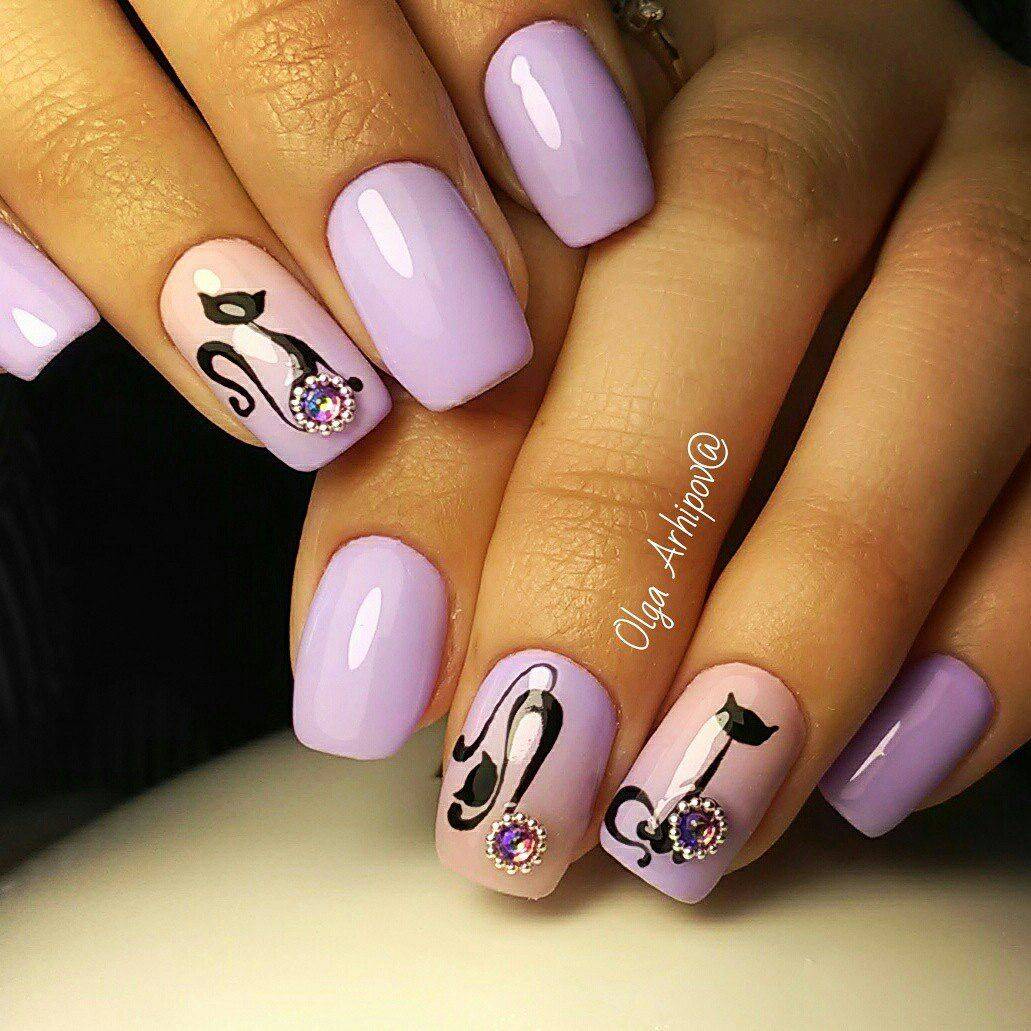 Короткие ноготки не повод отказываться от стильного дизайна с кошками. Чтобы маникюр получился выразительным внесите в него некоторые изменения. Вместо кошки изобразите на ногтях лапки, мордочки или силуэты.