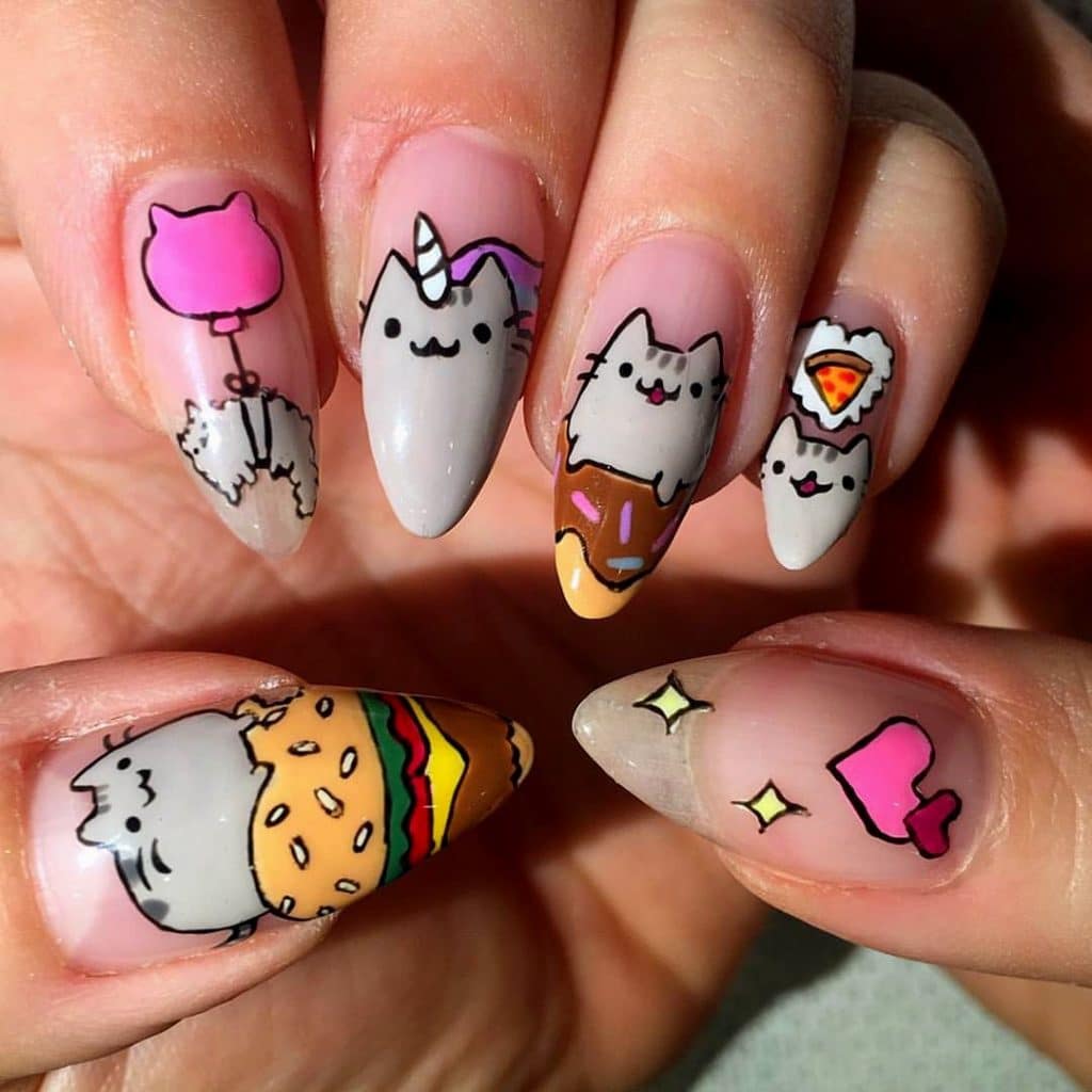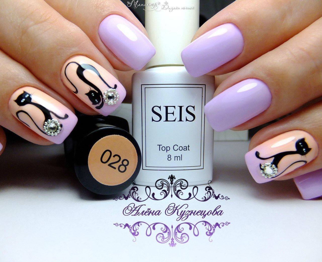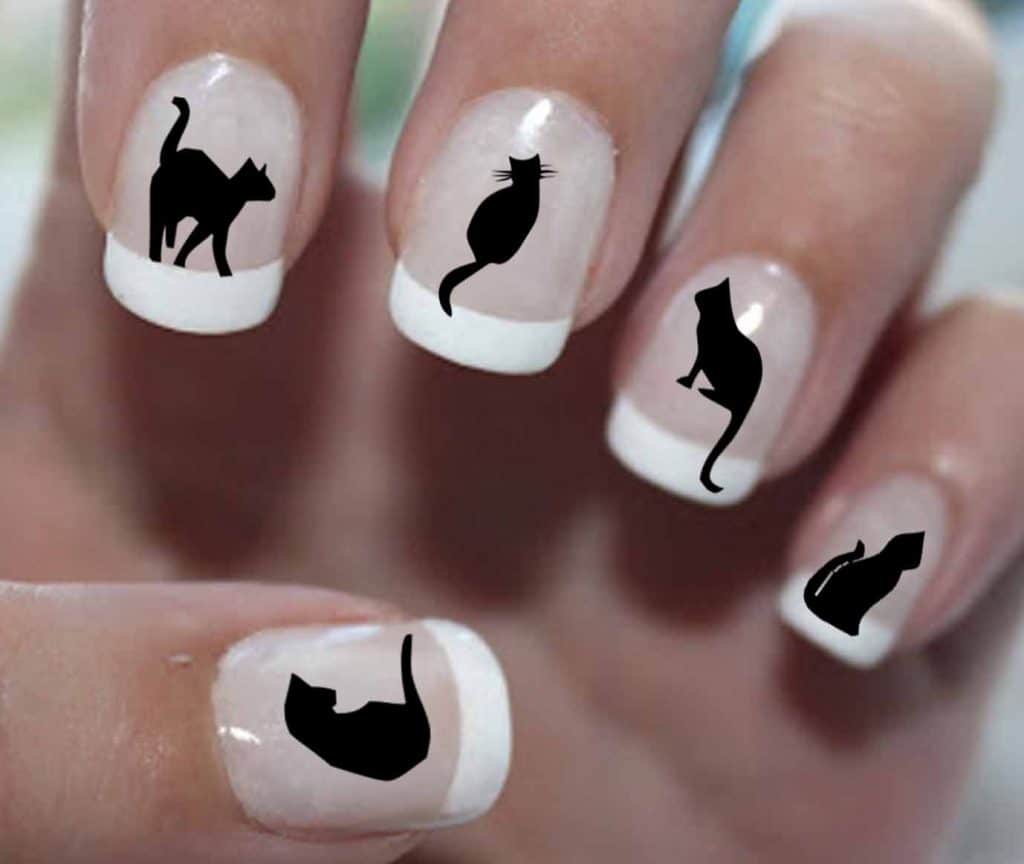 Короткие ноготки не повод отказываться от стильного дизайна с кошками. Чтобы маникюр получился выразительным внесите в него некоторые изменения. Вместо кошки изобразите на ногтях лапки, мордочки или силуэты.