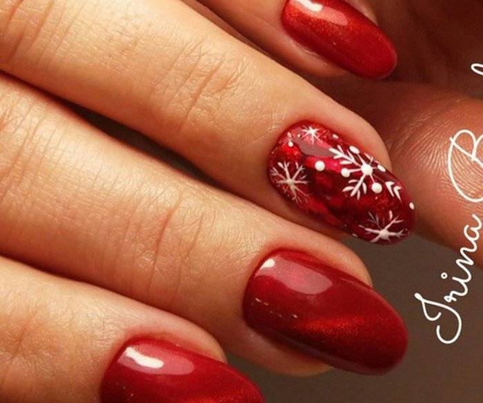 Когда как не на Новый год красный в маникюре обретает особую актуальность. Этот цвет согревает, дарит праздничное настроение и огромный простор для творчества.
