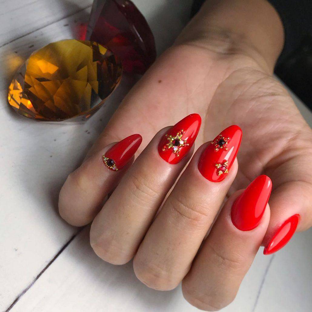 Красный цвет в оформлении ногтей пользуется особой популярностью. Все потому, что он многогранный, имеет довольно большое количество оттенков. Каждый из них интересный, универсальный и хорошо подходит практически для любого образа. В целом надо сказать, что красный маникюр выбирают не только для вечерних мероприятий, но и для деловых встреч. Поэтому его по праву называют классическим вариантом оформления в любое время года. Ну а наличие страз — это индивидуальное решение. И каждая модница может самостоятельно выбирать оптимальное количество деталей для того или иного маникюра.