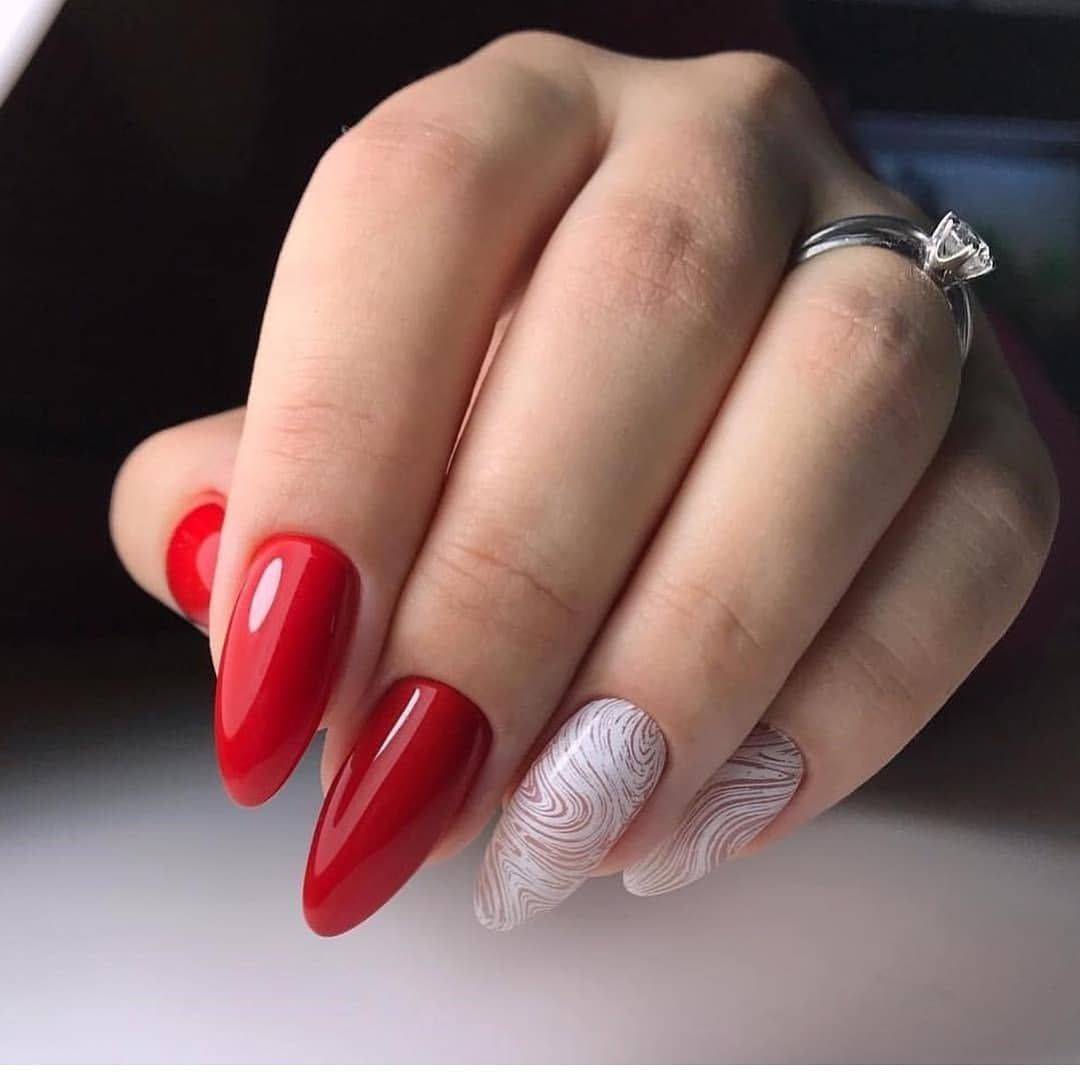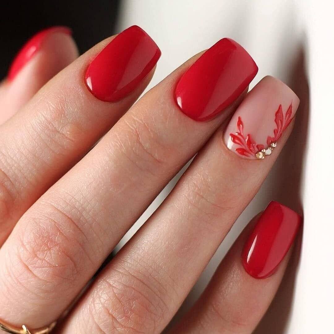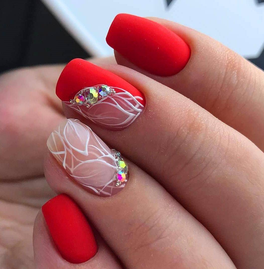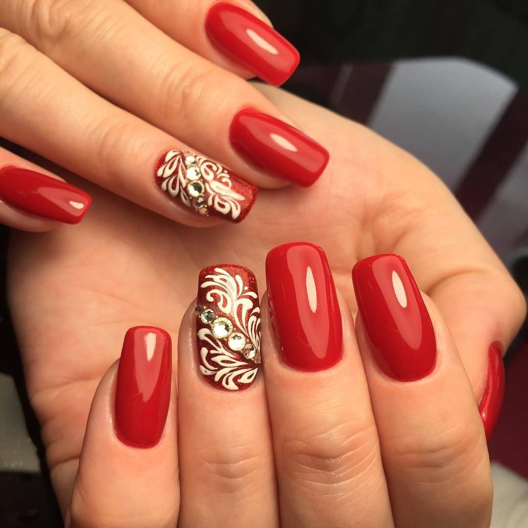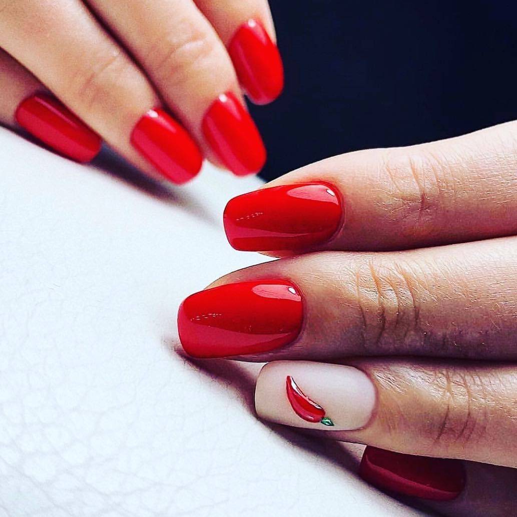Красный маникюр 2019 с разными цветами, оттенками и оформлениями