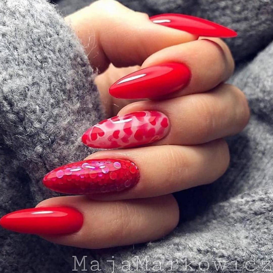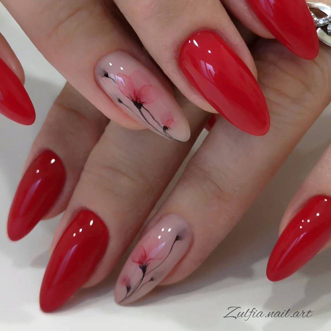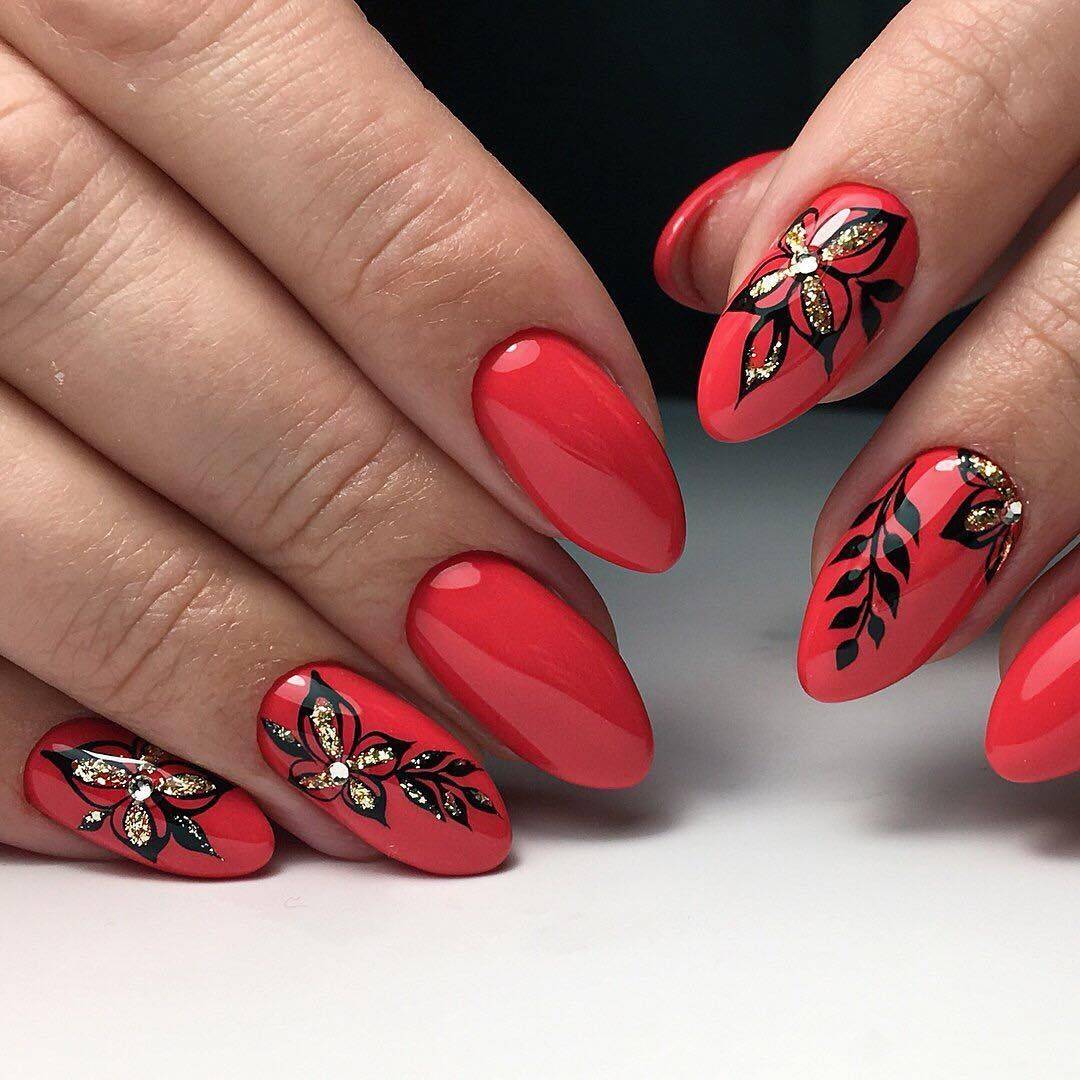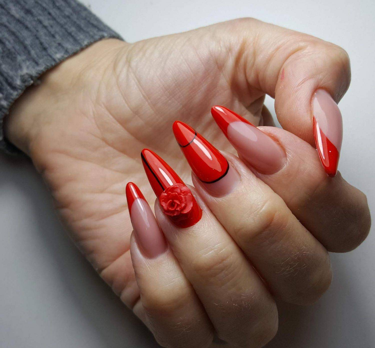Красный маникюр 2019 с разными цветами, оттенками и оформлениями