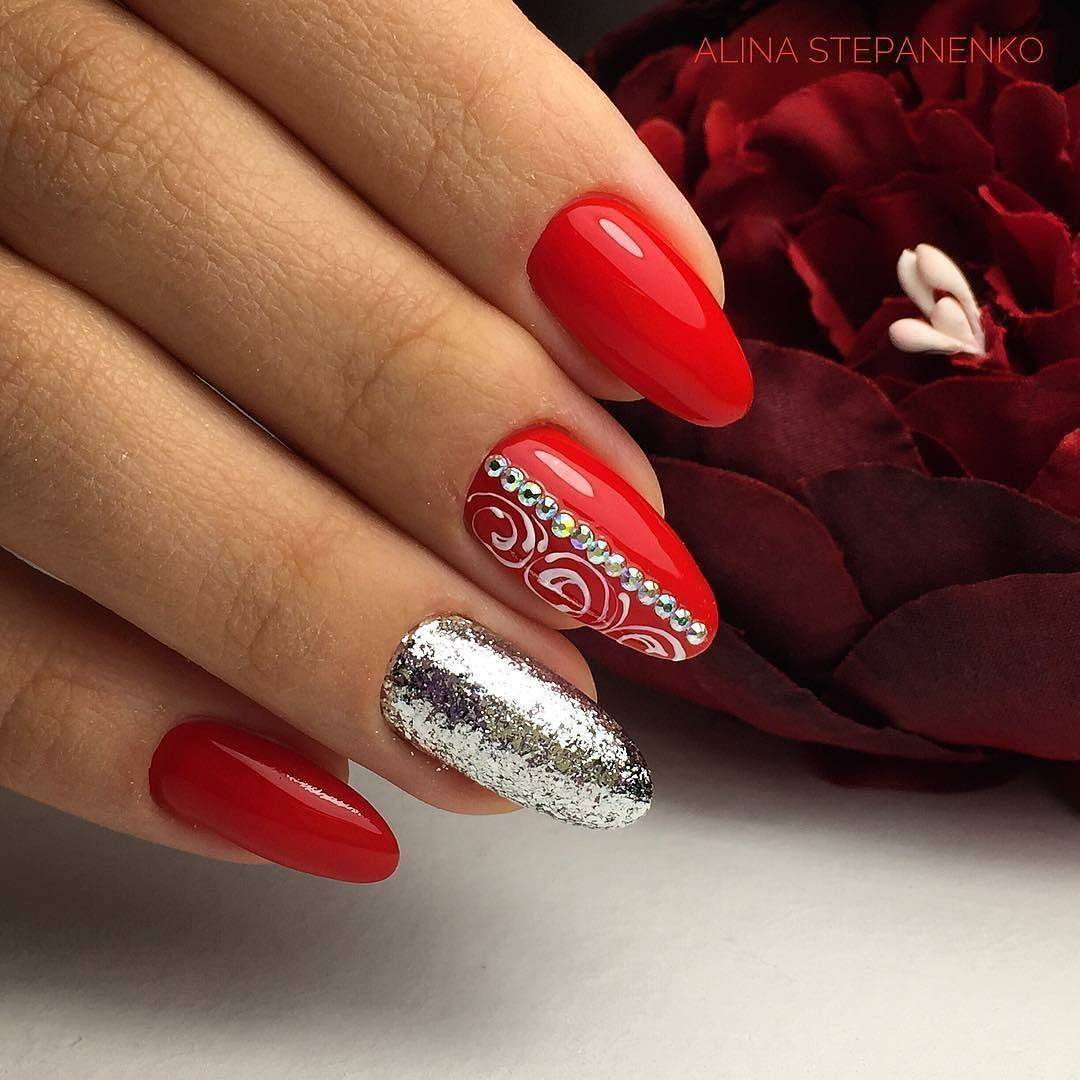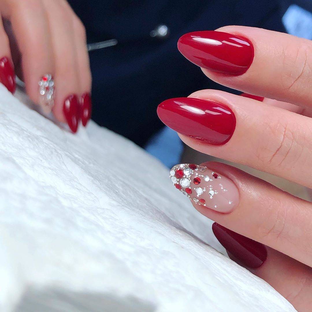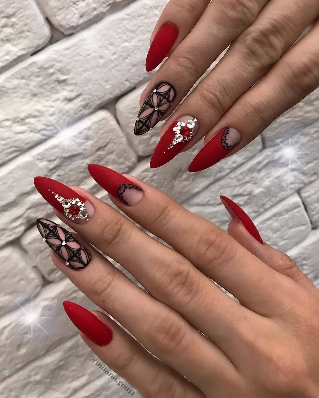 Модные идеи сезона 2019 для любительниц красных ногтей с рисунками и стразами: