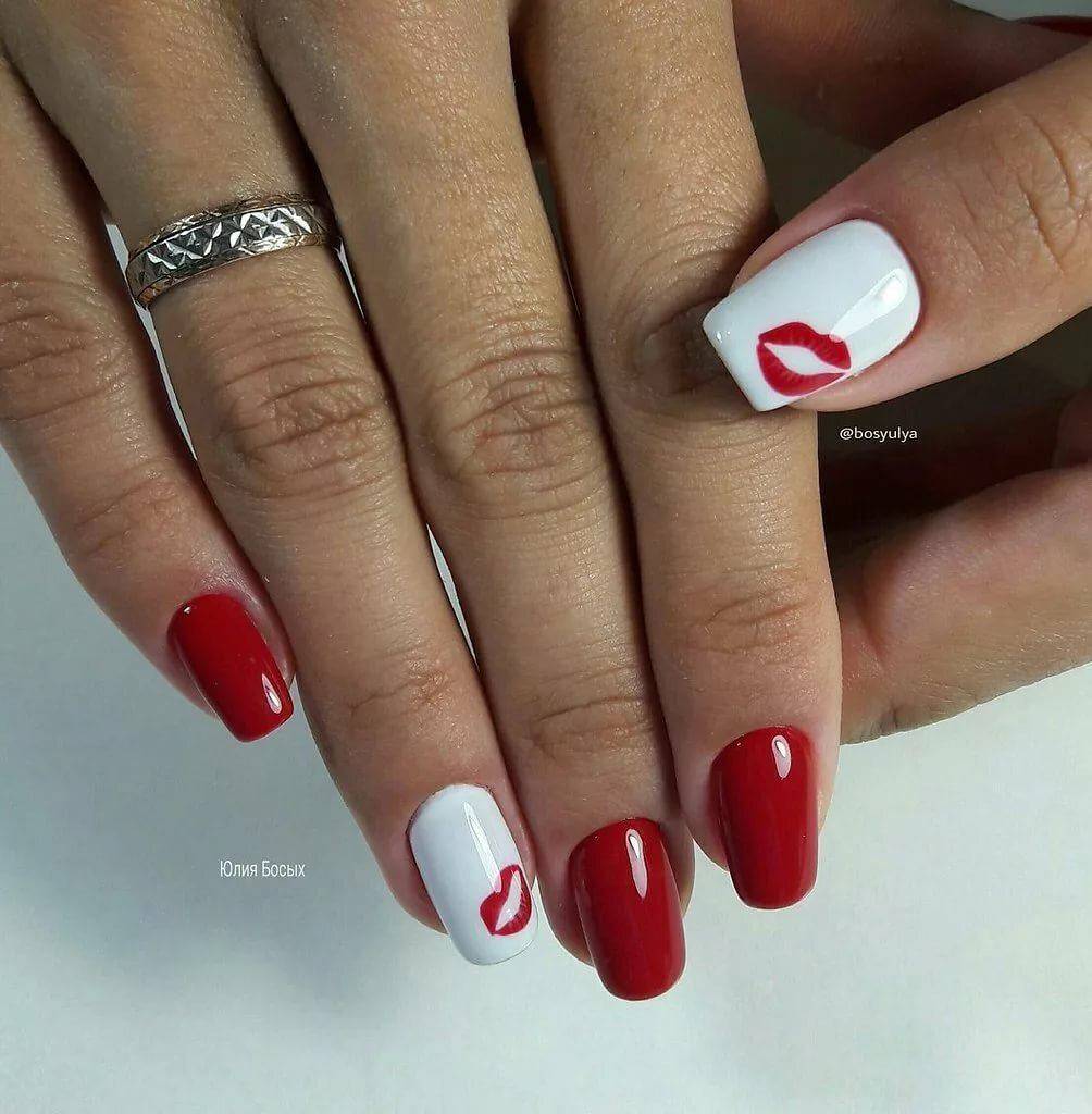 Сочетание красного и белого цвета подходит как для праздника, так и для повседневной жизни. Чтобы усовершенствовать дизайн, стоит применить технику объёмного рисунка. Украсить 1 или 2 пальца стразами, камнями.