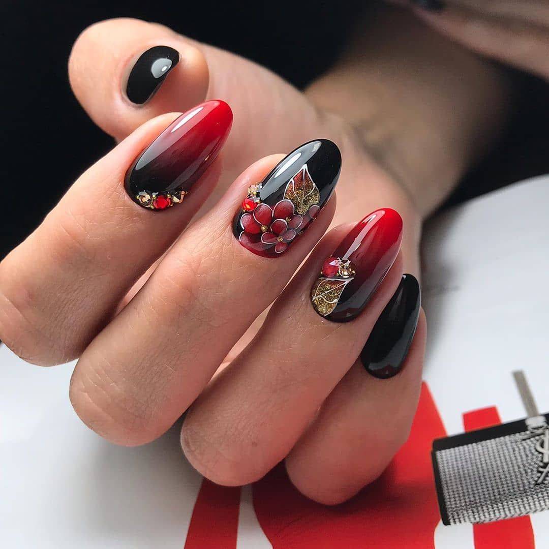 Психологи говорят, что красно-черный маникюр выбирают эмоциональные, творческие личности, уверенные в себе и своем вкусе, целеустремленные и не боящиеся трудностей натуры
