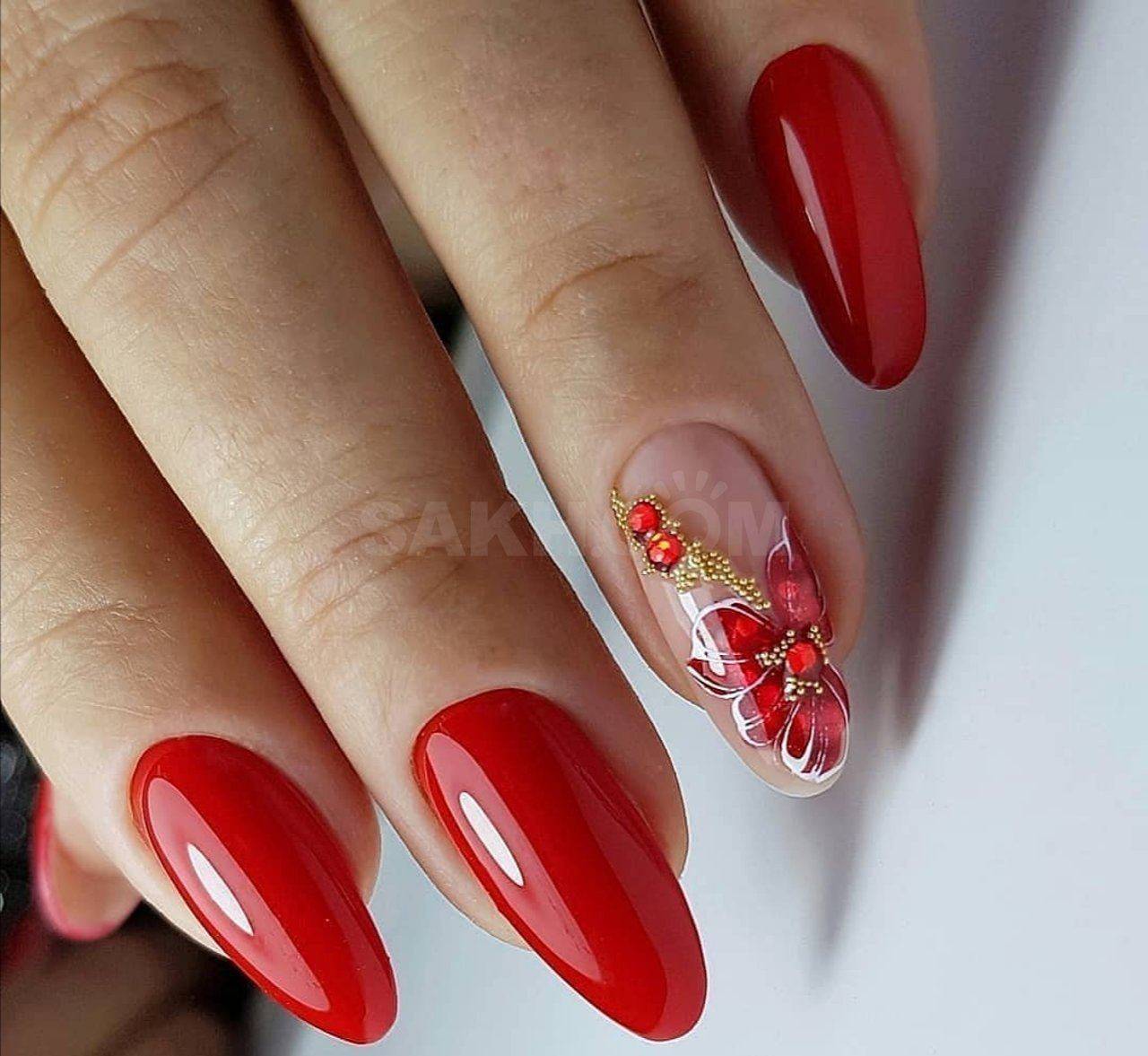 Красный цвет ассоциируется с любовью и страстью. Яркое оформление ногтей придает образу выразительности и торжественности. Сейчас несложно подобрать свой изысканный оттенок красного лака, ведь их довольно много: