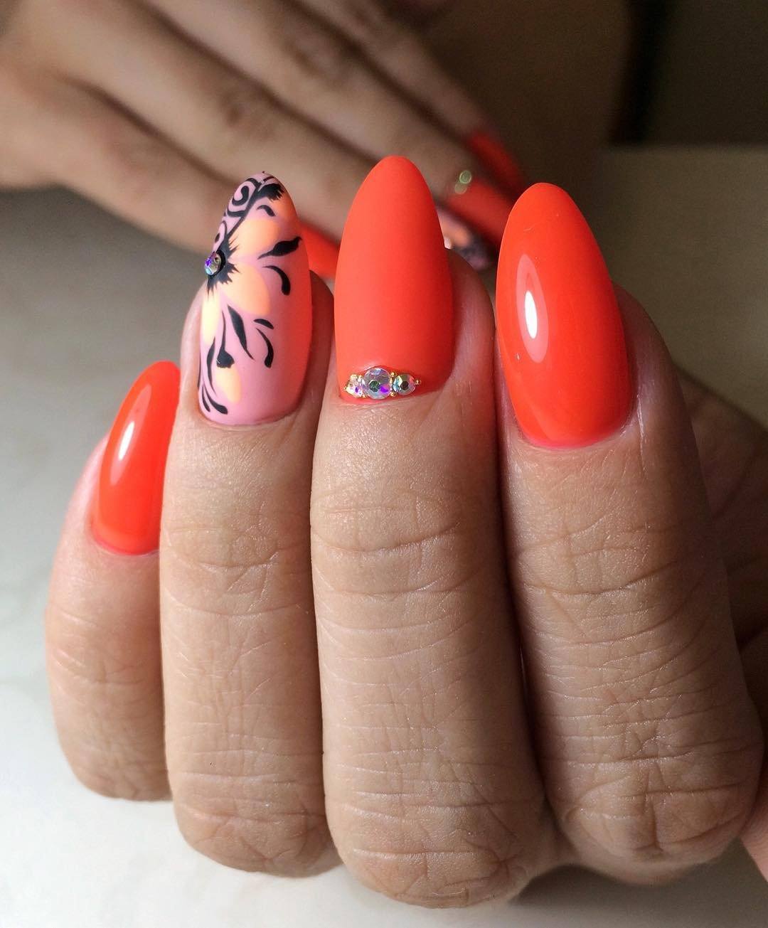 - острая или эллипсоидная формы ногтевой пластины – отличное сочетание с цветовой палитрой;