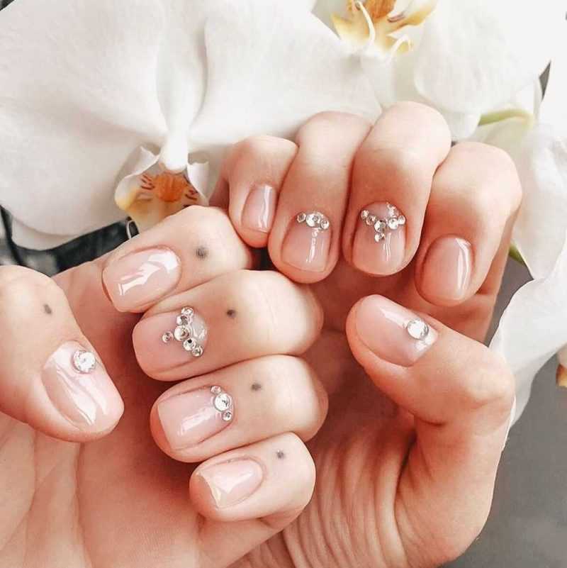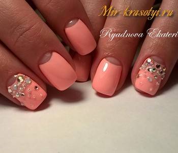 Красивый маникюр на 1 сентября. Нюдовый маникюр гель-лак с жидким камнем.