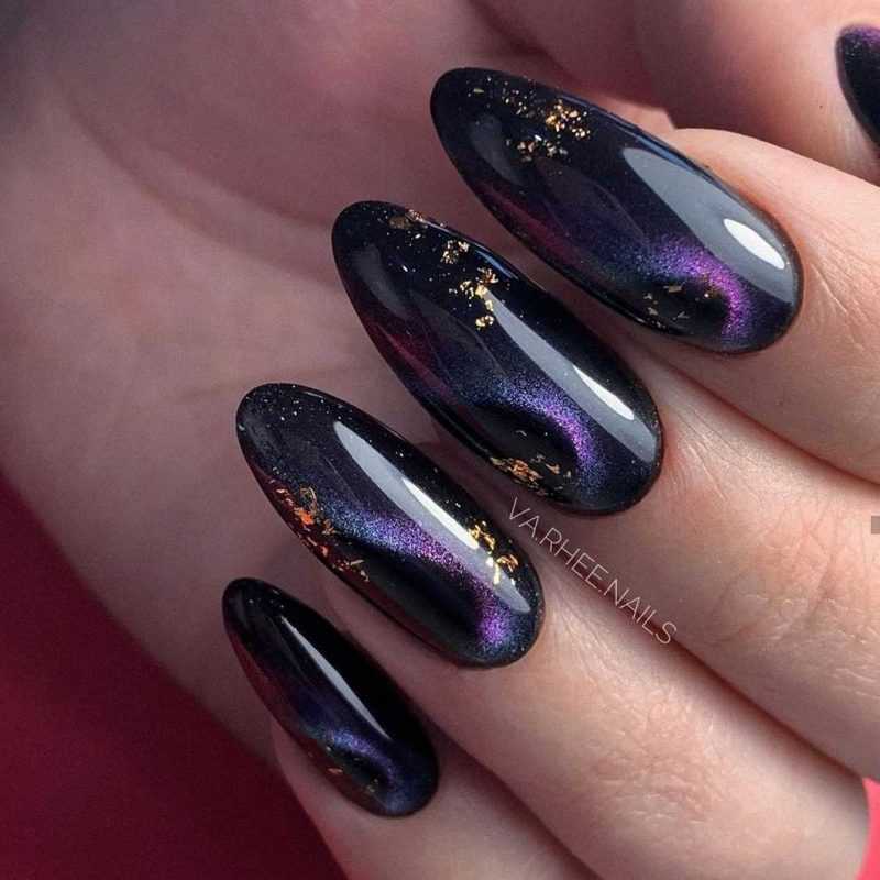 Вот совершенно потрясающий маникюр в научном стиле. Как его сделать? Конечно, не обязательно повторять его точь-в-точь, возможно, эти идеи натолкнут вас на какие-то собственные. Это маникюр, конечно, очень красивый, но он достаточно сложный. Во-первых, требуется множество разных лаков, но также и определенный опыт, чтобы так рисовать. Поэтому оценивайте свои силы.