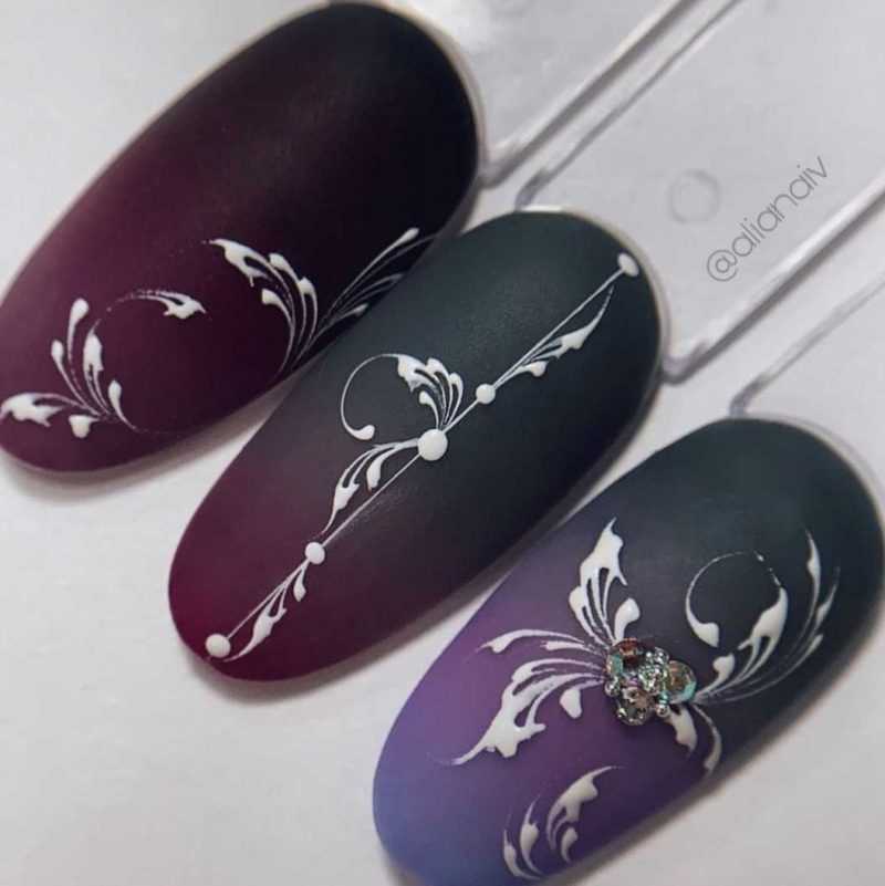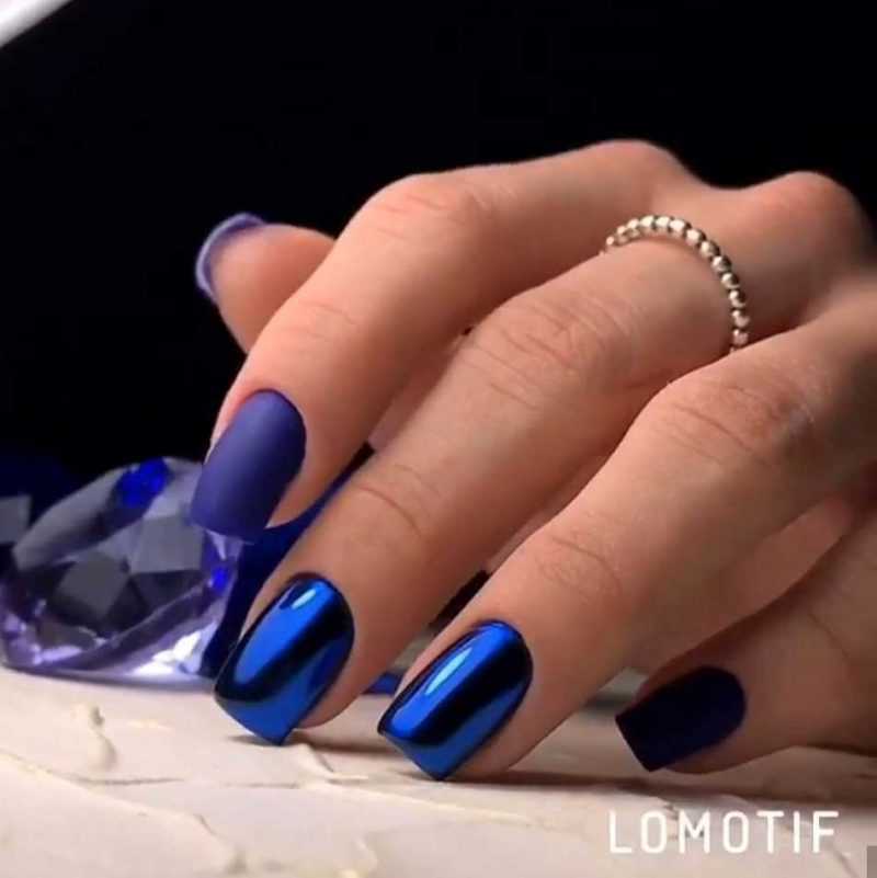 Необычно и стильно выглядят ногти, покрытые матовым лаком или сочетание глянца и матовой текстуры. Для создания такого дизайна потребуется любой лак для ногтей и матовое топовое покрытие.