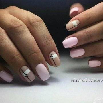 Девушкам, которые предпочитают простой и скромный дизайн на своих коротких ноготках, рекомендуется выбирать спокойные и нежные тона. Если их покрыть матовым покрытием, то получится очень романтичный дизайн. Так же очень часто выполняют все пальчики глянцевыми топом, и только несколько ноготков преображают матовым покрытием. Такой маникюр придает общему образу девушки легкость и беззаботность.