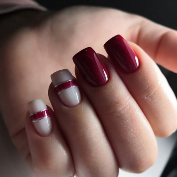 • модный глянец в стиле ретро – есть вещи, которые никогда не выходят из моды; вот ноготки, покрытые глянцевым гель-лаком бордового цвета (оттенок марсала) – это именно то, что так современно даже сегодня; слегка миндалевидная форма ногтей приблизит такой маникюр к стилистике прошлого и настроит свою счастливую обладательницу на ретро-волну;• непринуждённый горошек – еще одна вариация нестареющей классики, альтернатива модному дизайну 2021-2022 года; в сочетании бело-черной цветовой гаммы такой маникюр на коротких ноготках выглядит безупречно: можно брать за основу белый гель-лак с чёрными горошинами или наоборот – результат будет необыденным и позитивным;• матовый шик – очень многие современные девушки полюбили матовые гель-лаки и не готовы прощаться с ними даже на миг. Действительно, бархатистая поверхность матового покрытия настолько глубоко и выразительно смотрится на ярких и тёмных тонах, и настолько нежно и естественно на светлых, что отказаться от подобного роскошного матового дизайна просто невозможно;• глянцевый френч – тренд 2021-2022, невероятная задумка, которая очень проста в выполнении, но при этом безумно элегантна в своём виде: дизайн предполагает матовую основу с глянцевой улыбкой френча. Эффект просто поразительный: можно получить эстетическое удовлетворение от созерцания такого дизайна; особенно гармонично смотрится единение глянца и мата в одной тональности, к примеру, чёрное матовое покрытие базы и чёрная глянцевая улыбка френча;• градиент – недавно в моду вошло перенесение насыщенности цвета от одного ноготка на пальчиках руки к другому, от менее тёмного к более нежному и наоборот (в одной тональности); казалось бы, нет ничего проще, чем нанести на мизинец светло-серый гель-лак, на безымянный – потемнее, на средний – асфальтовый, и так до большого пальца, покрытого тёмным графитового цвета гель-лаком. Такое своеобразное омбре выглядит довольно неординарно и нравится многим современным модницам; при этом градиентный переход можно воссоздавать не только в гамме единой руки, а делать его на каждом ноготке – от тёмного у прикорневой зоны к светлому у торца ногтя и наоборот.