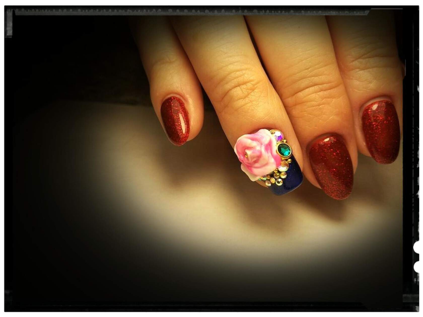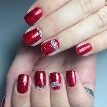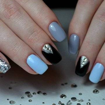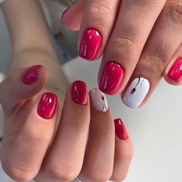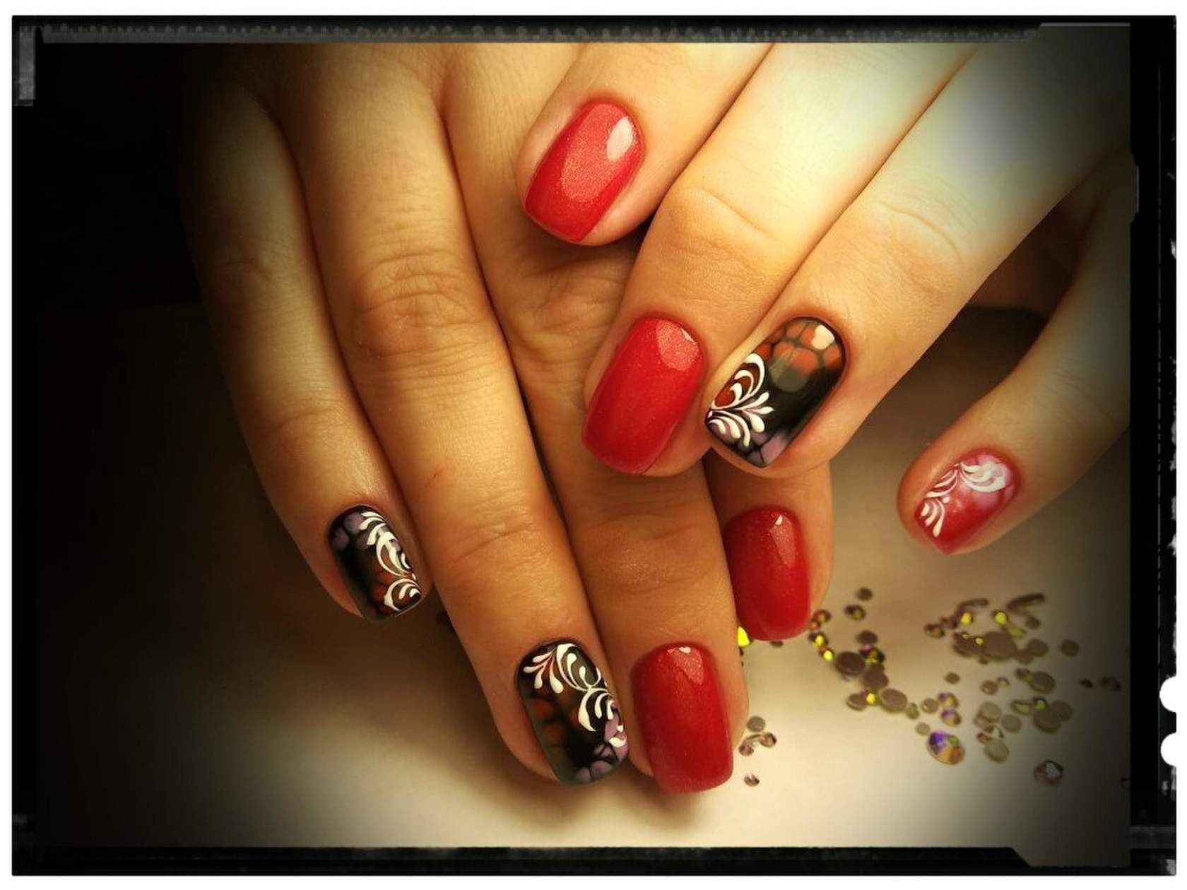 • гель-лак с рисунком – довольно часто используемая комбинация, особенно на длинные ногти, когда можно поимпровизировать и подумать над изображением объёмных картинок на ногтях; гель-лак в данном случае играет роль полотна, а узоры красками – роль декораций. Гармонично выглядят светлые рисунки на тёмном фоне и наоборот, тёмные узоры поверх белого покрытия – так выдерживается художественность воссоздаваемой на ногтях композиции;• гель-лак со стразами – многие девушки не представляют свой маникюр без блестящих вкраплениё многогранных камешков; для деловой стилистики поверх геля выкладывают по одному камешку в центре ногтевой пластины у прикорневой зоны – смотрится тонко и элегантно