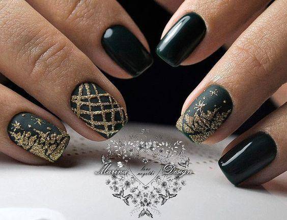 Сложно представить новый год без зеленых пушистых елочек. В эти праздничные дни они везде–на упаковках продуктов, на витринах магазинов, на принтах одежды, в телевизоре, окнах… Маникюр не исключение. Изображают елку полностью, с игрушками нарядную или со снегом, как будто только из леса. Также популярно изображать только елочную ветку, также наряженную или припорошенную снегом.