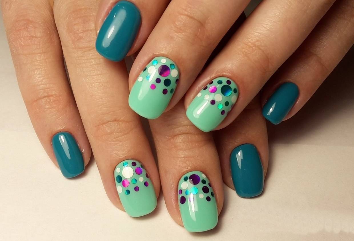 На белоснежной эмали прекрасно смотрятся рисунки, в нужных местах дополненные пайетками-конфетти. Здесь разнообразие решений практически неограниченно и зависит только от профессионализма мастера. Украшения в виде круглых пайеток подружатся с цветочными изображениями, милыми мультяшками, акварельной росписью, геометрией и другими графическими вариантами.
