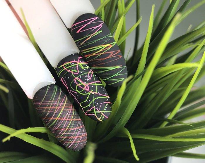 Это безусловный хит лета 2020. Возможно они останутся популярными и в следующем 2020 году. Они очень яркие, поэтому использовать их нужно дозировано, чтобы не перегрузить дизайн. Лучше всего сочетать их с нейтральными оттенками: белым, бежевым или черным. А вот с неоновыми гель-лаками их лучше не использовать, может получится перебор. Хотя некоторые мастера виртуозы дизайна умудряются это делать гармонично.