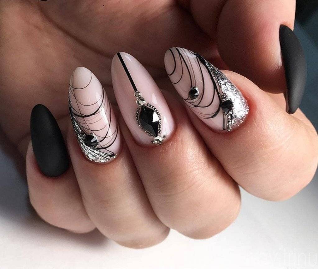 Красивый дизайн ногтей паутинка прекрасен на матовых и глянцевых поверхностях, оригинальных сочетаниях с глиттерными и пудровыми ноготками.