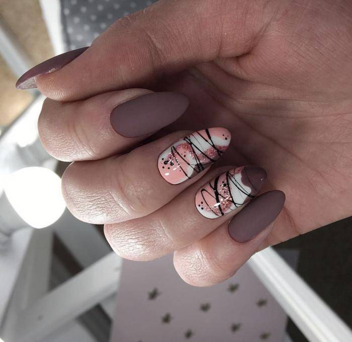 Красиво и нежно как на коротких ногтях, так и на длинных, выглядят белые тонкие линии, выполненные спайдер-краской. В качестве основного цвета стоит выбрать нежные пастельные тона: бежевый, светло-розовый, лавандовый, нежно-желтый, выбеленный фисташковый, тауп. Дополнить такой маникюр «паутинка» можно мелкими бульонками, камнями, фольгой. Это превратит дизайн в праздничный. На фото ниже можно увидеть, как утонченно сморится такой нейл-арт на ногтях.
