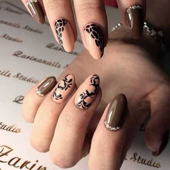 Маникюр коричневый с бежевым: фото и идеи дизайна