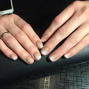 Ну а маникюру в нюдовых тонах, выполненному гель-лаком, такие проблемы совершенно не страшны. Прочный материал создает хорошую защиту для пластин, не скалывается, не пачкается и способен радовать красотой около двух-трех недель. Кроме того, использование гель-лака позволяет всячески экспериментировать с оттенками, фактурами, блеском и прочими эффектами благодаря широкому ассортименту доступных нынче материалов. Да и выглядит созданный гель-лаком дизайн намного богаче и эффектнее.