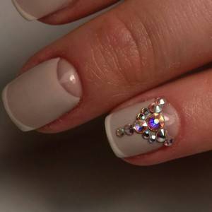 Что придаст маникюру роскоши и красоты? Это – стразы. Они могут украсить любой дизайн. Когда дело касается френча, стразы здесь пользуются особой популярностью, поскольку, обычно, они – единственная деталь, которая сделает благородным весь дизайн.