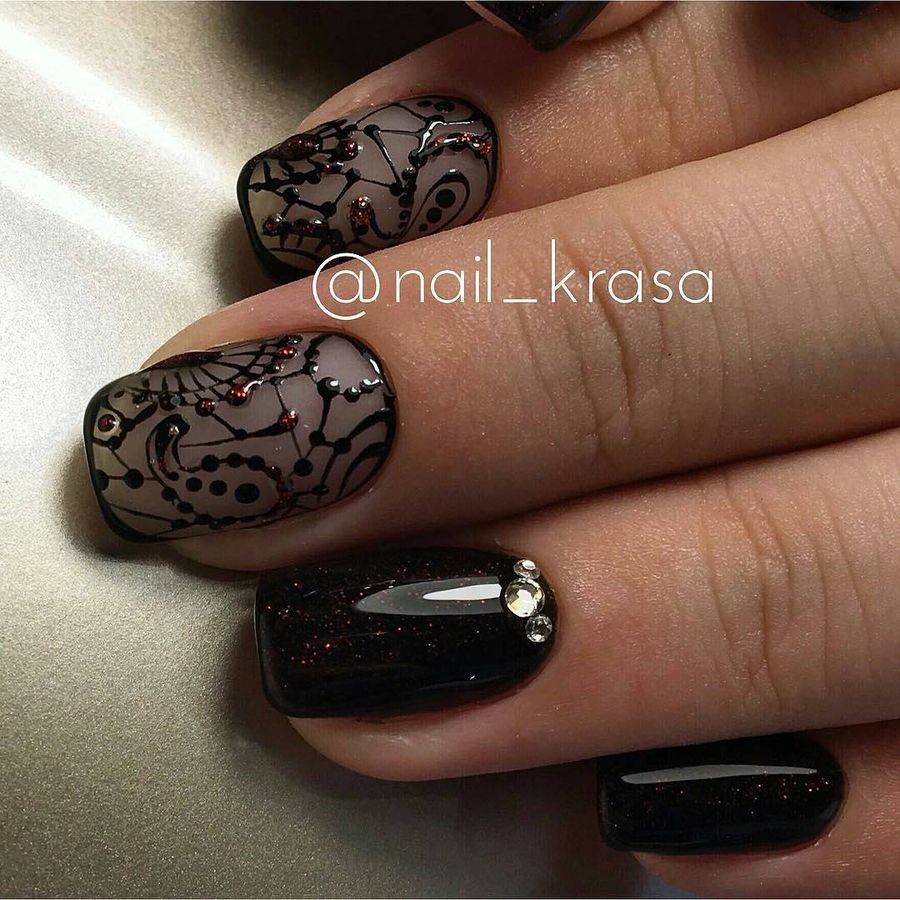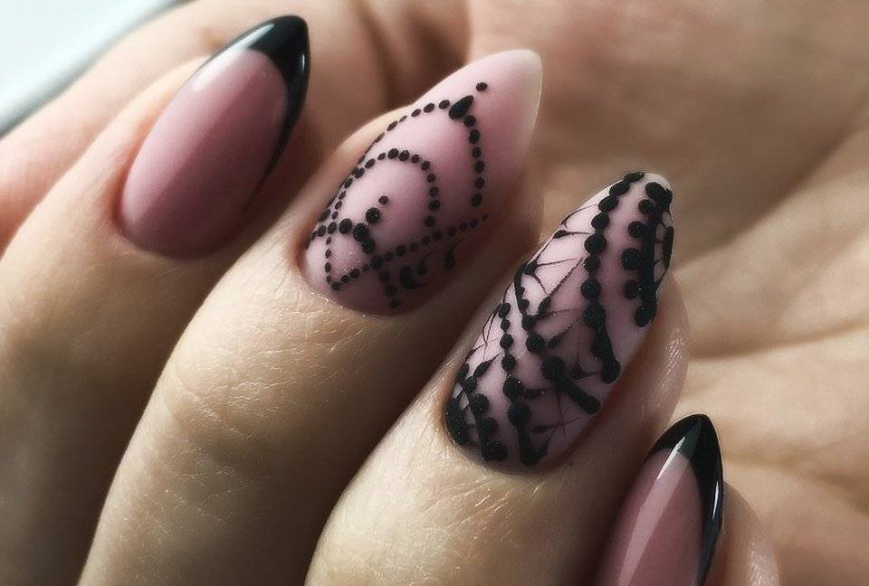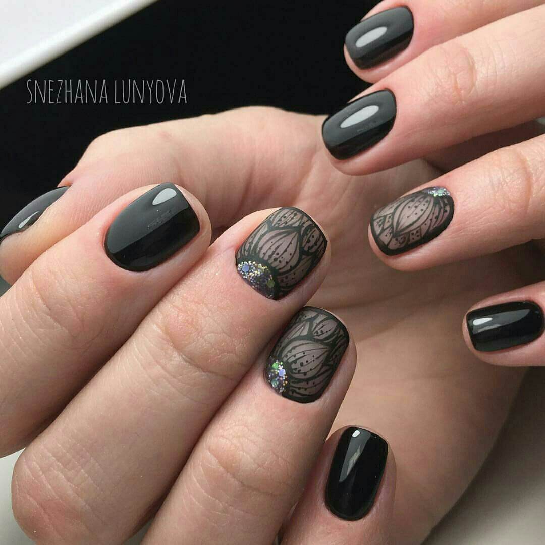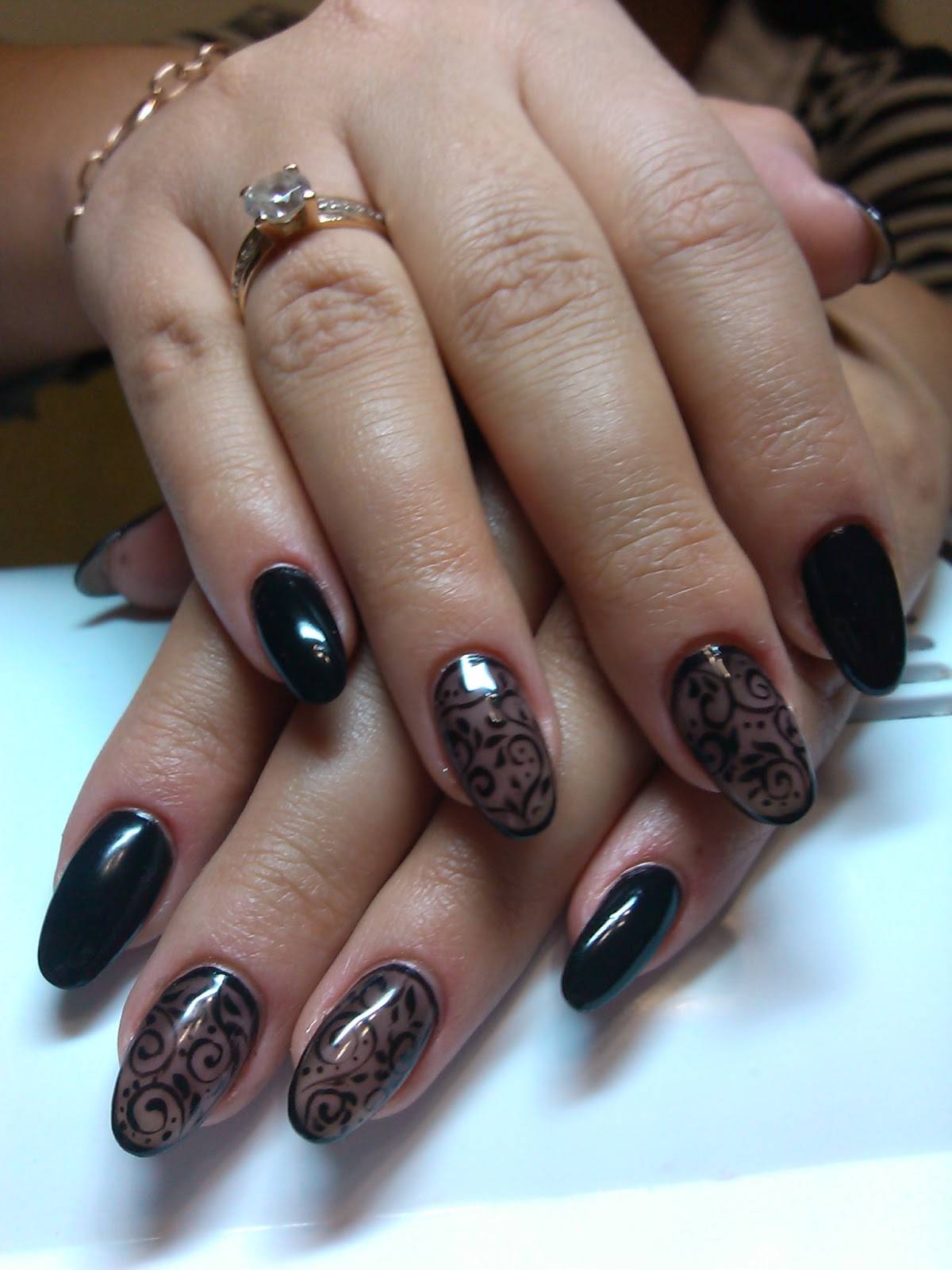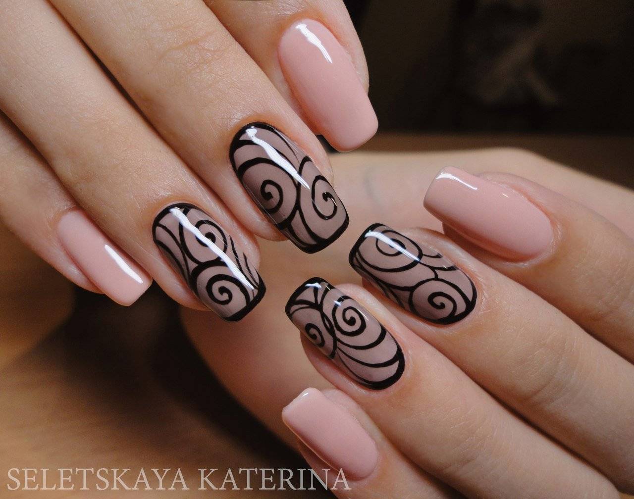 - Классический орнамент выполняется в черном цвете . Не каждая девушка любит окрашивать ноготки исключительно в черный цвет. Однако именно этот вариант меняет привычное представление про темные цвета лаков. Исключительно черный цвет сделает кружевной маникюр действительно идеальным и неповторимым.