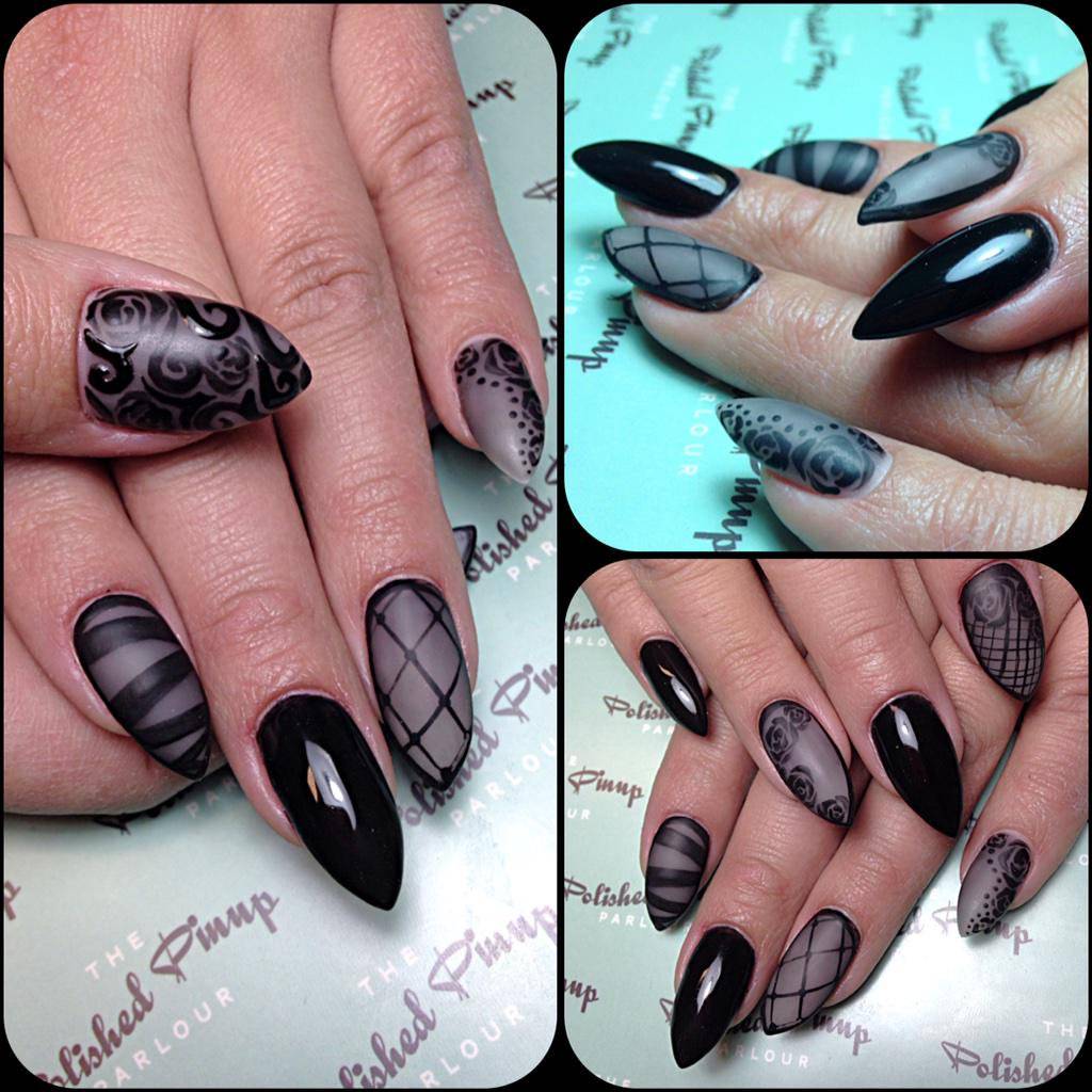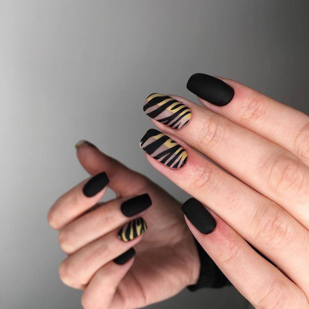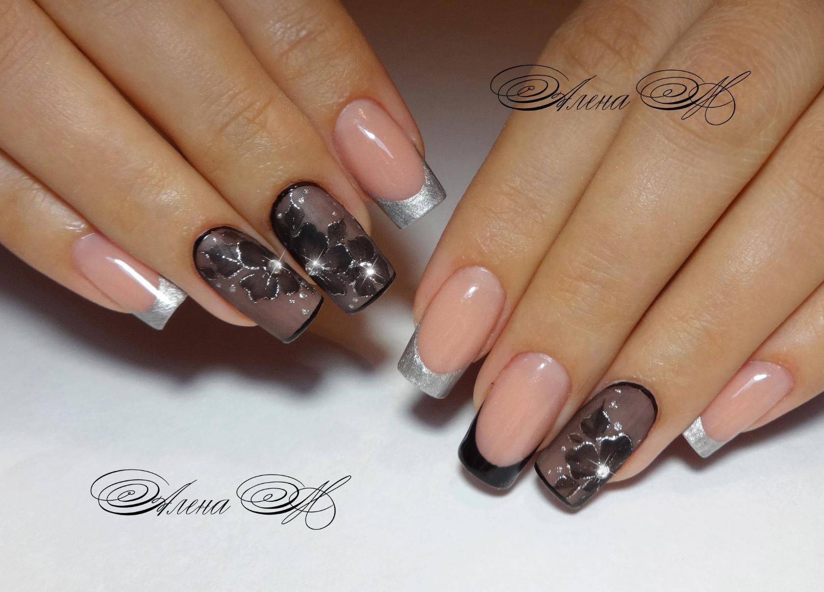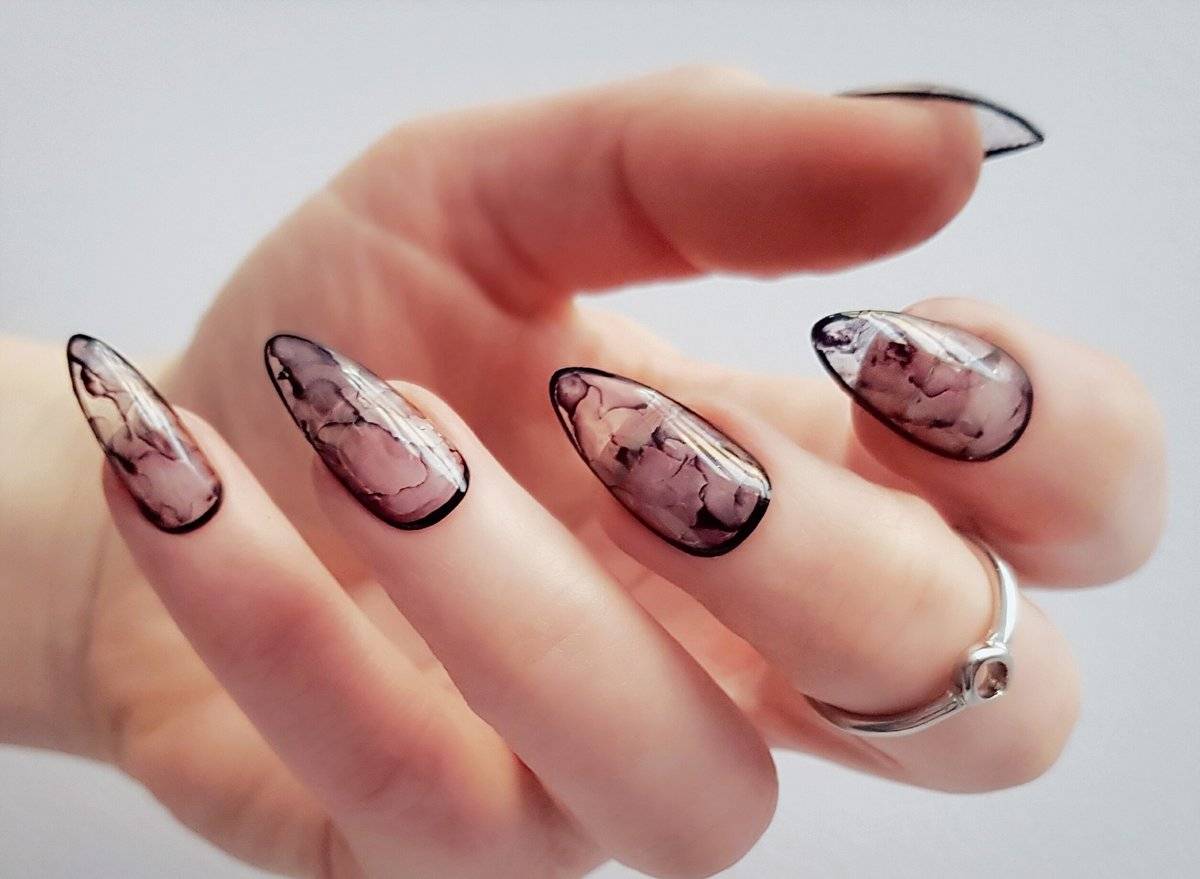 Любой дизайн начинается с технической обработки кутикулы, коррекции длины и удаления ороговевших участков. После чего идет художественная обработка пальчиков и нанесение покрытий и декора. Мы уже упоминали о том, что черную краску можно смешивать с топом или базой. Стилисты рекомендуют выбирать базовое покрытие для смешивания и росписи ногтей.
