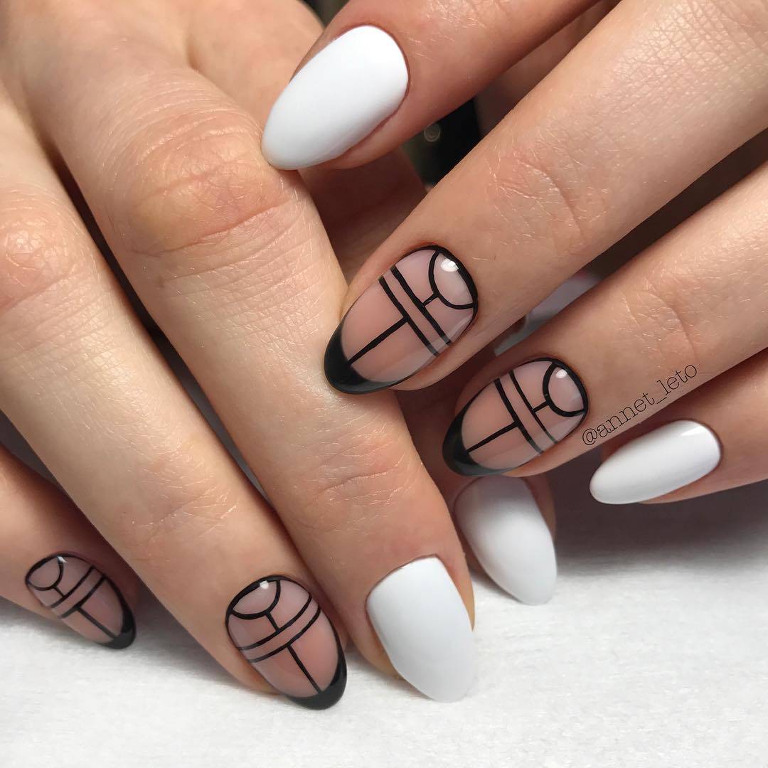 - В классическом исполнении маникюр колготки предусматривает использование чёрного, белого и нюдовых тонов.