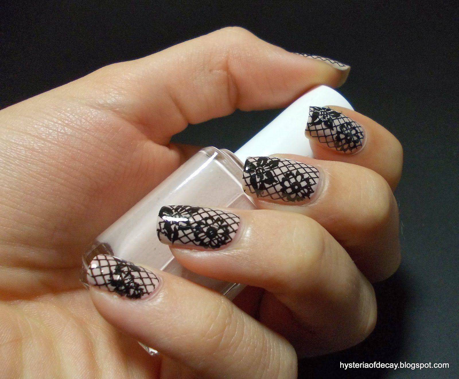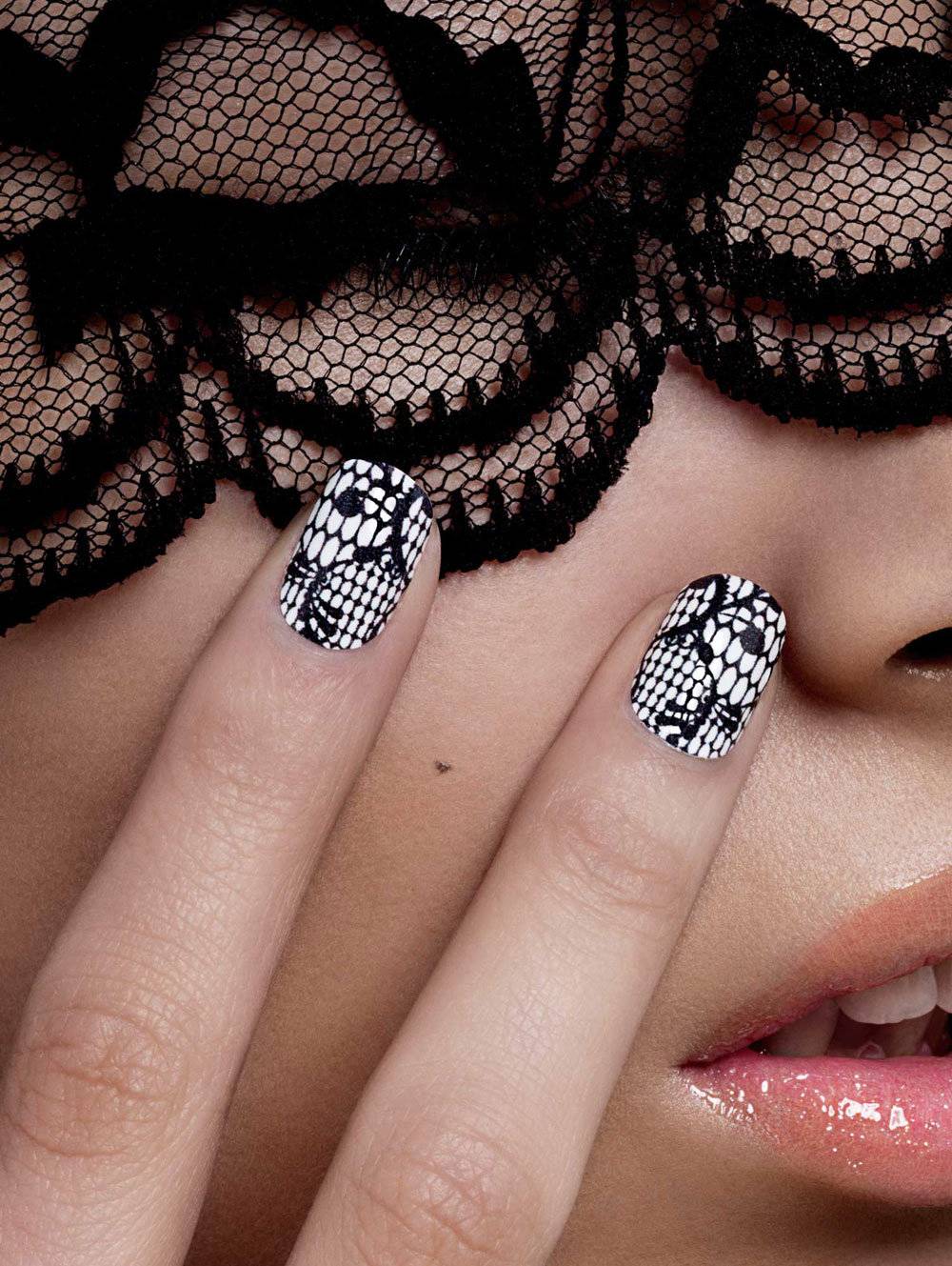 Девушкам с короткими ногтями при создании маникюра-вуали очень пригодятся наклейки с кружевным узором.