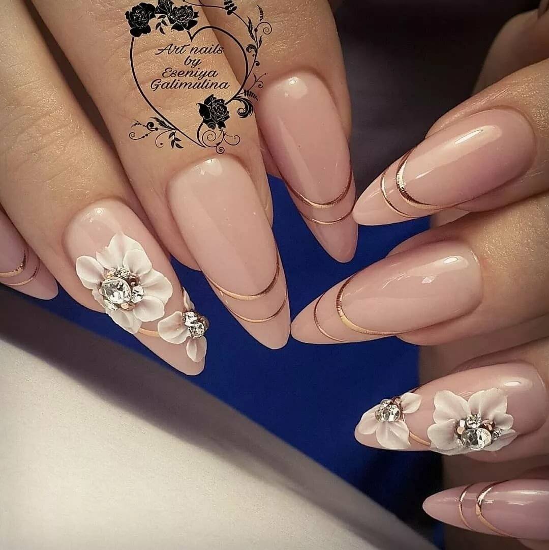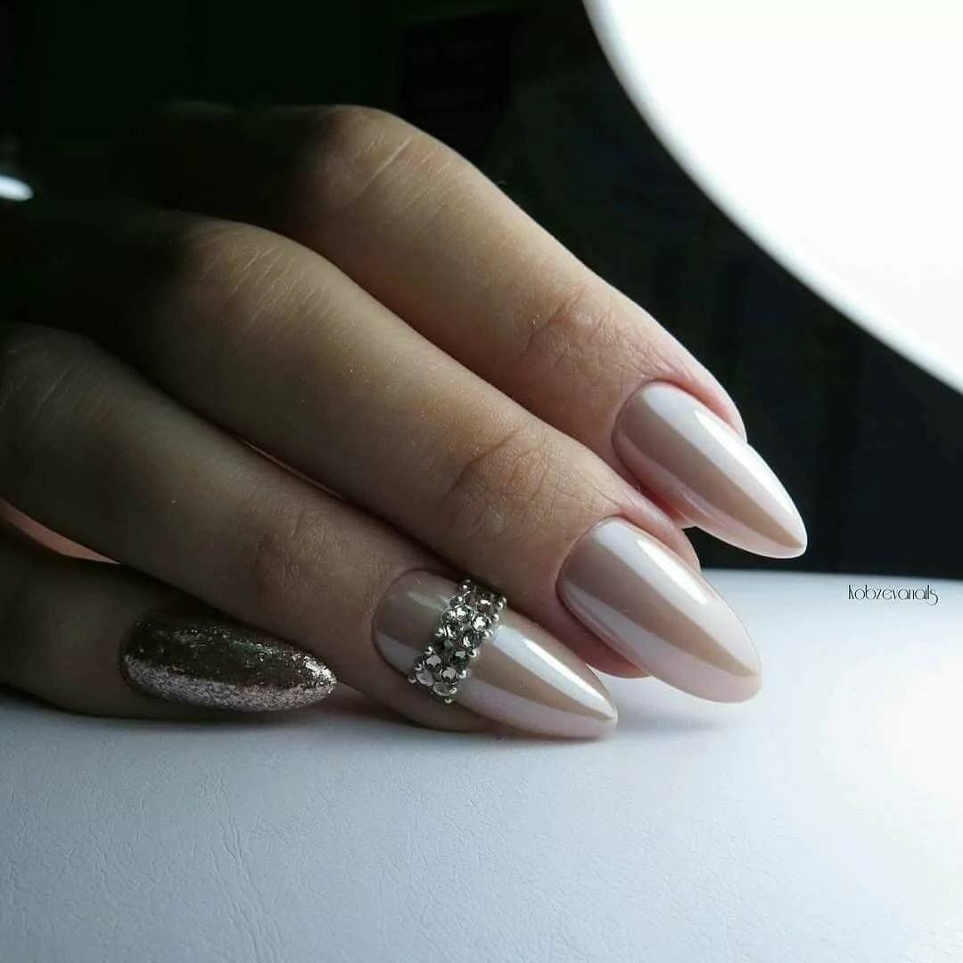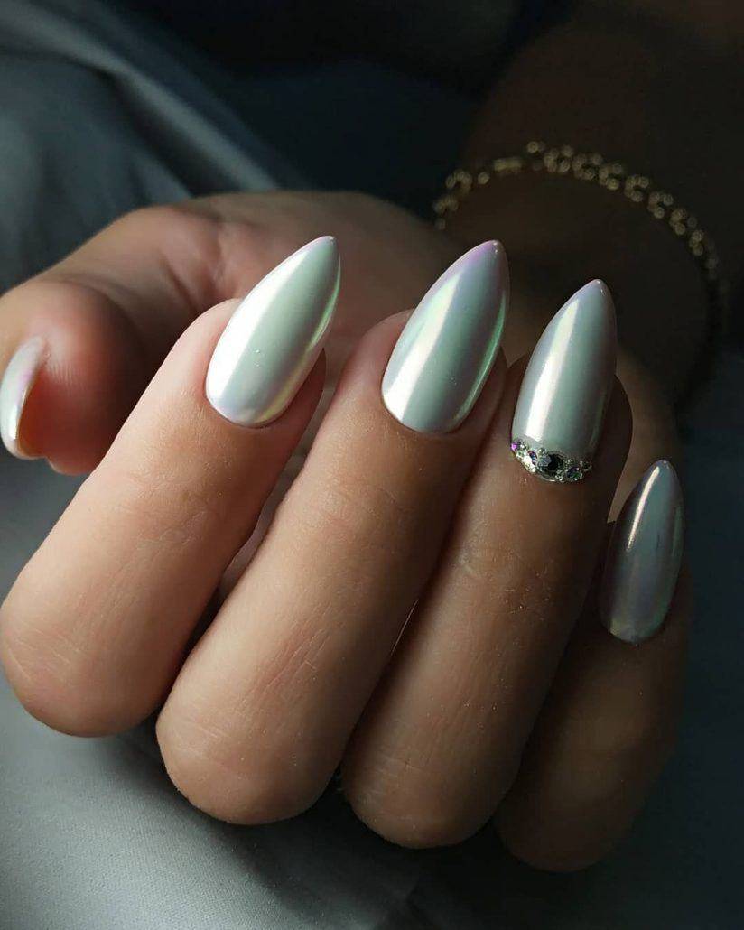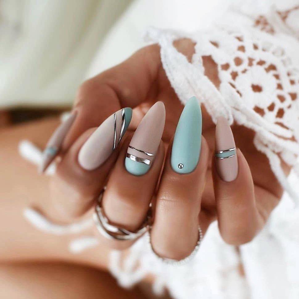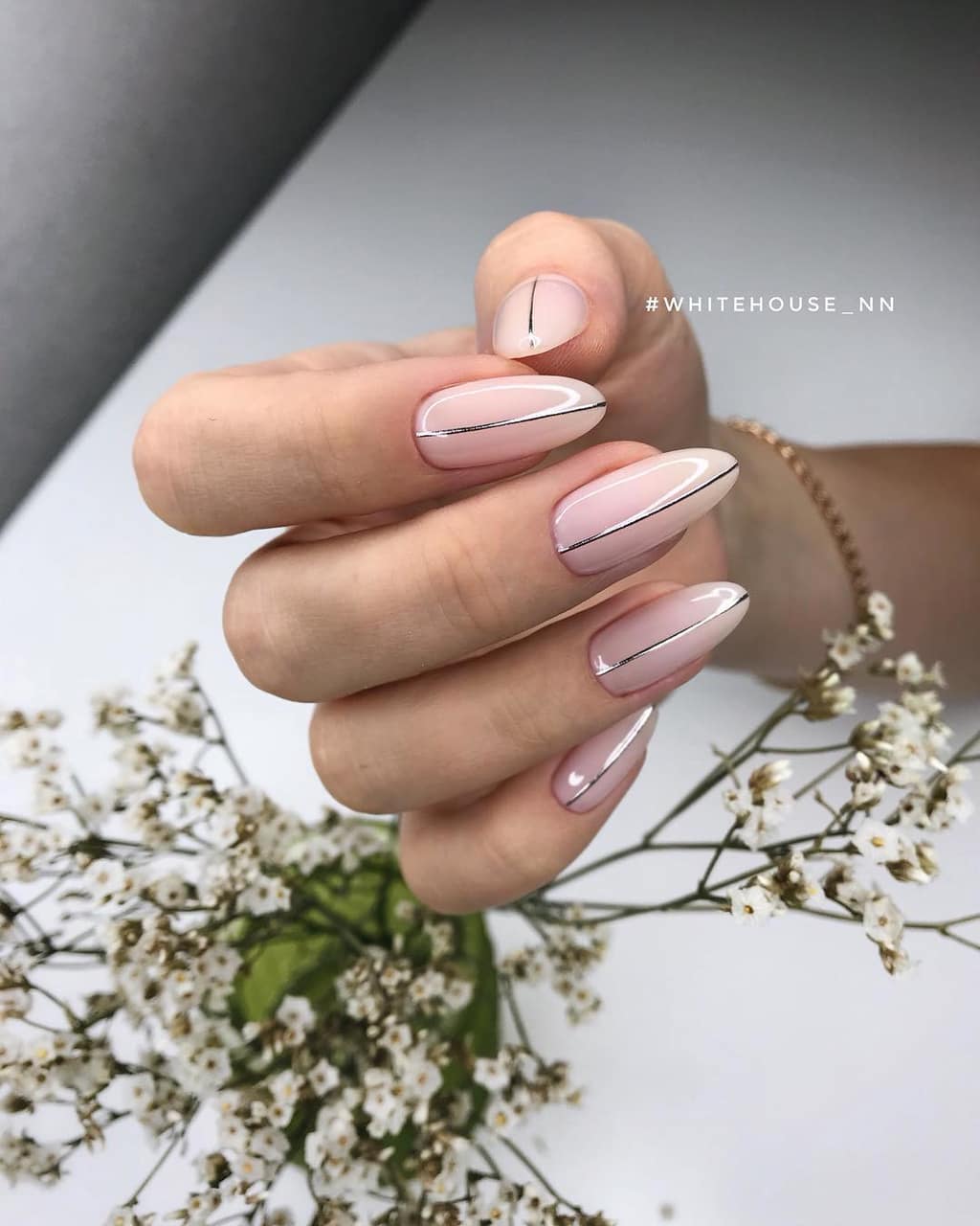• Оригинальная форма ногтей и стильный металлический декор маникюра будут хорошо сочетаться с модными и стильными серебряными украшениями.