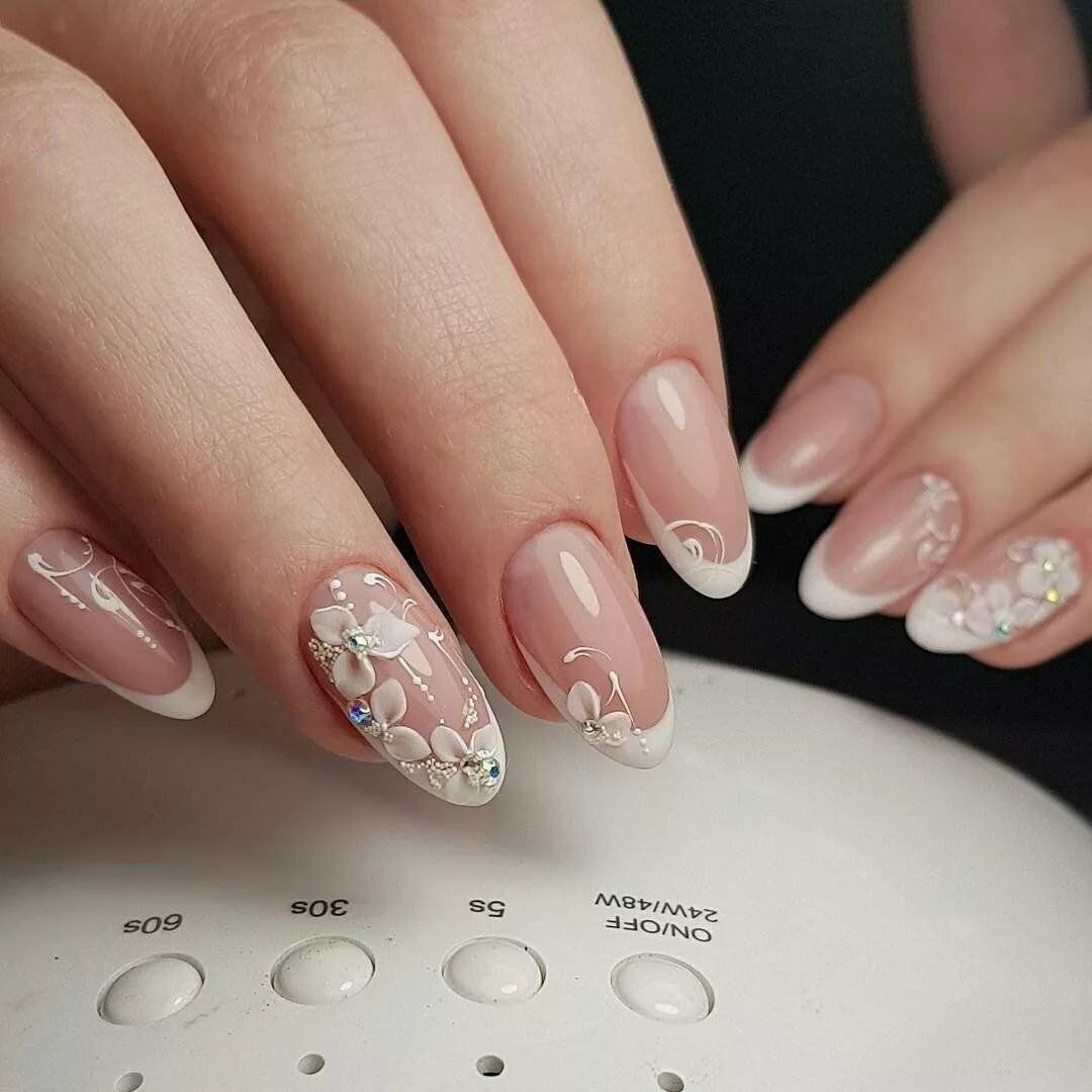 Свадебное торжество – трепетное и волнительное событие. Все должно быть под контролем, особенно такие незначительные мелочи, как маникюр. Заранее обговаривайте с мастером, какой декор вы хотите видеть на своих ноготках.