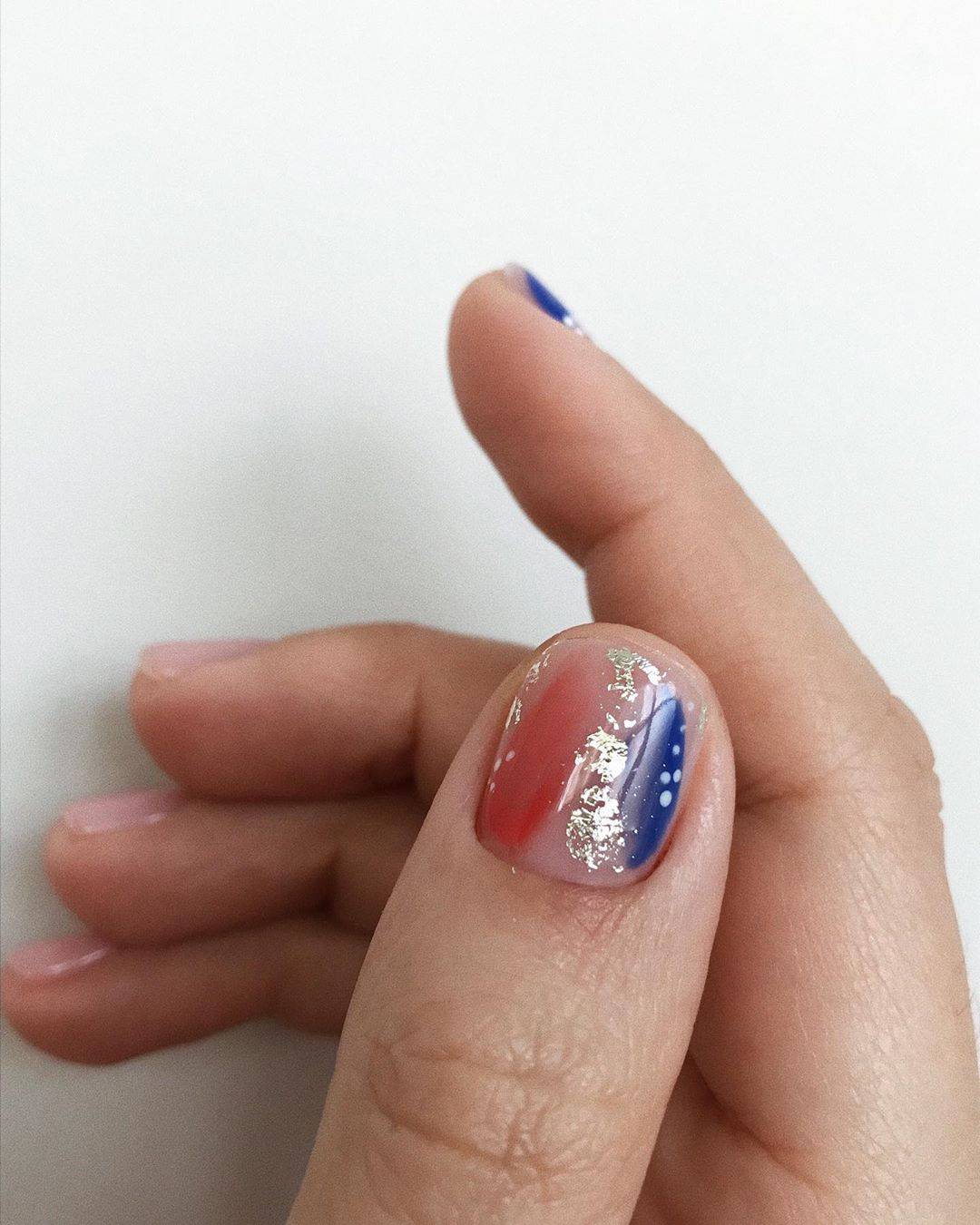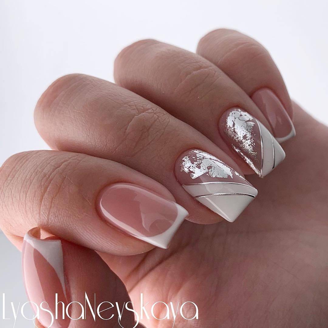 В 2020 году стоит присмотреться к геометрическому дизайну. Тонкие линии, фигуры и точки – все это можно использовать для создания бесчисленного количества рисунков на любой вкус. К тому же, многое зависит от техники нанесения. В домашних условиях использовать кисти не всегда удобно. Выбирайте стемпинг для симметричности. С помощью блесток можно подчеркнуть одну-две линии, что сделает дизайн чуть более ярким.