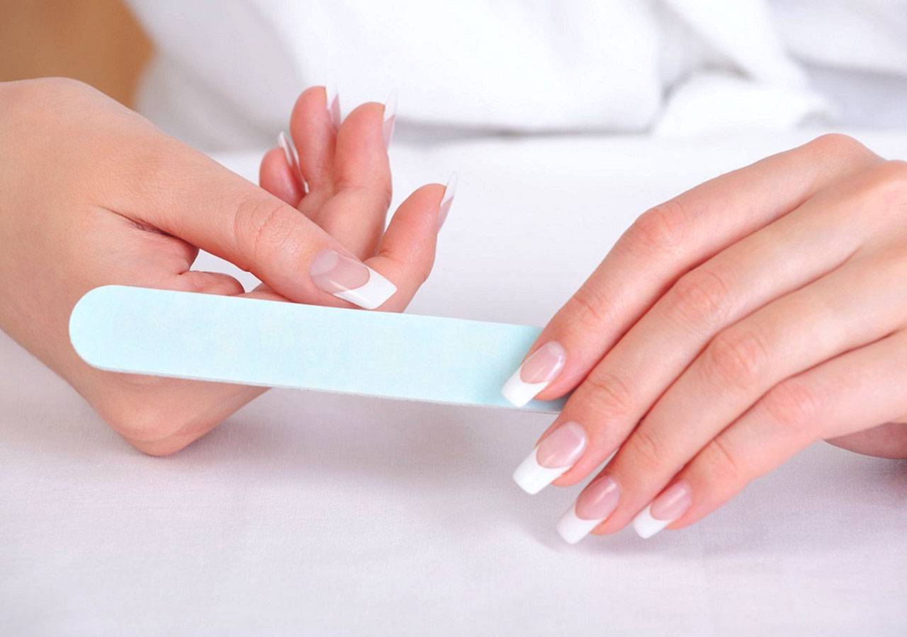 - Обрабатывают ногти при помощи пилки, формируя идеальную форму. Кончики пластин делают тоньше, придавая естественность.