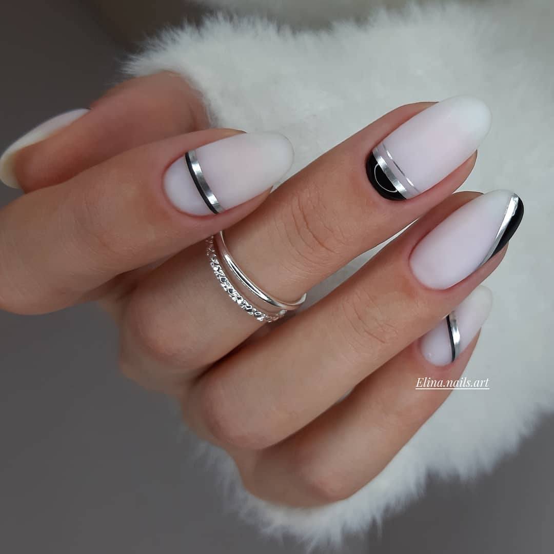 В этом летнем сезоне разнообразные полоски стали неотъемлемым трендом многих видов маникюра, и дизайн в нежных тонах не стал исключением. Для поддержания атмосферы нежности и невесомости, нейл-дизайнеры рекомендуют отказаться в летний период от броских полосок или наносить их исключительно на светлые оттенки в комбинированном дизайне. Нежные покрытия очень красиво сочетаются с металлизированными полосками, тонкими штрихами глиттера или контрастными тонкими линиями. Узоры принято располагать на любой части ногтевой пластины и в любом направлении
