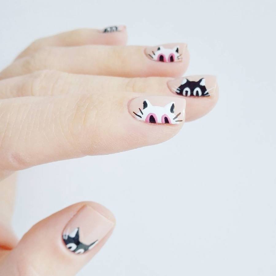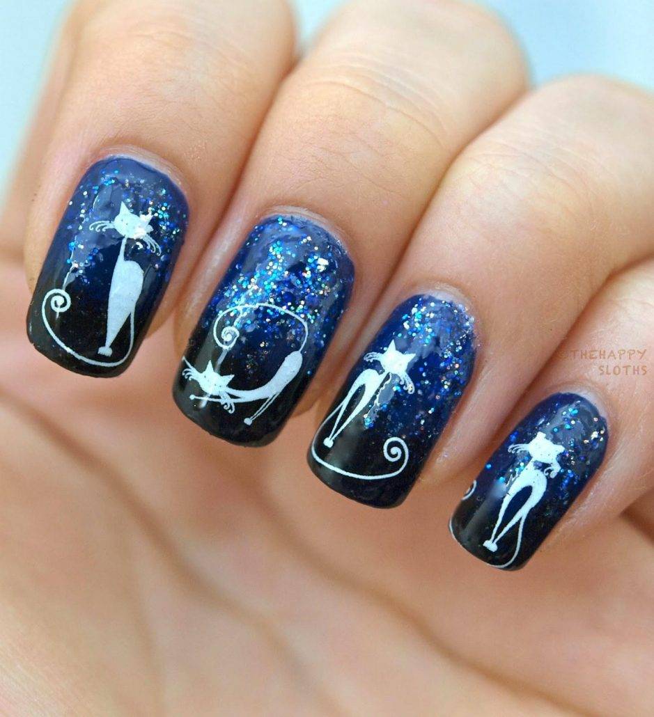 Поэтому не удивительно, что это милое животное тоже стало символом праздника. Но, как бы там ни было, кошки получаются больше милым и забавным, нежели ужасающим и пугающим. Поэтому девушки их часто выбирают для украшения своего праздничного маникюра наравне с тыквами.