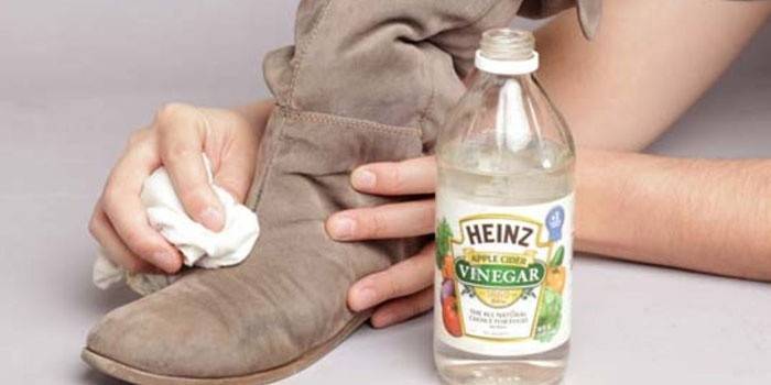 Еще одно предостережение: уксусная кислота может оставить следы на внутренней стороне обуви. Чтобы проверить – обработайте маленький участок в малозаметном месте. Если туфли показали себя устойчивыми к данному дезинфектору – приступайте к работе.