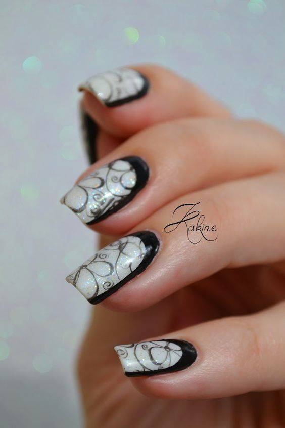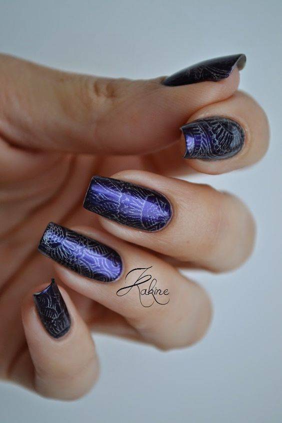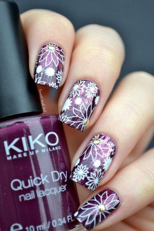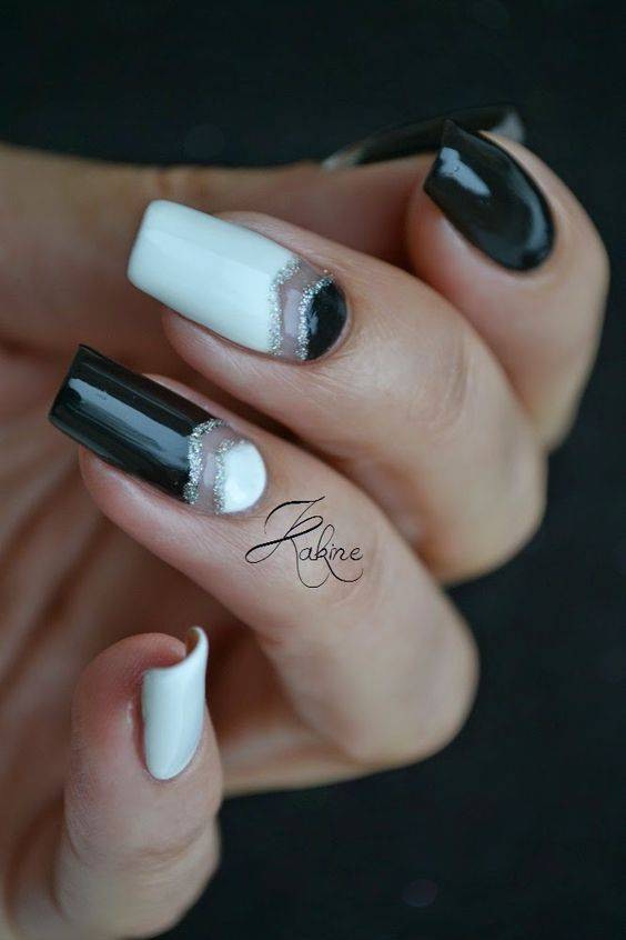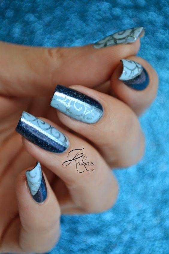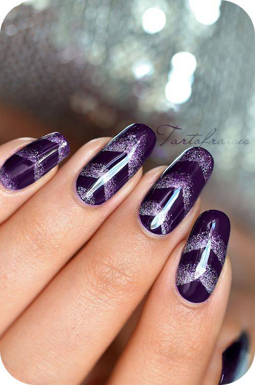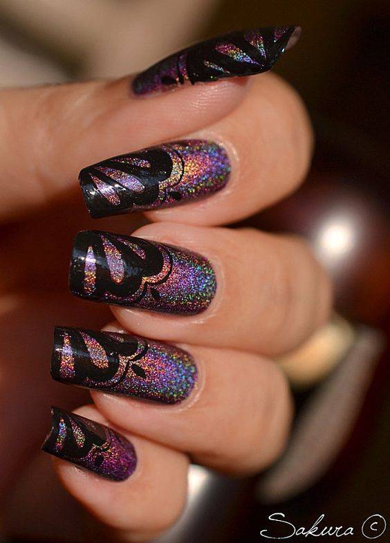 Чтобы создать действительно интересный и уникальный дизайн используйте несколько вариантов декора. К примеру, на фото сочетаются несколько видов лака, специальная пудра, слайдер-дизайн и стразы