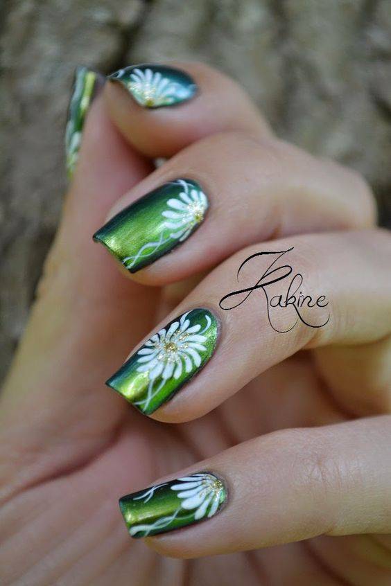 Но в этом варианте очень важно найти нейл-мастера, который действительно хорошо рисует и может создать что-то очень красивое. К примеру, буйную зелень, разнообразные морские мотивы или цветочные рисунки