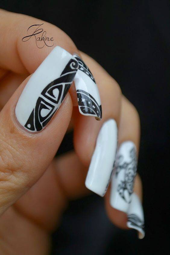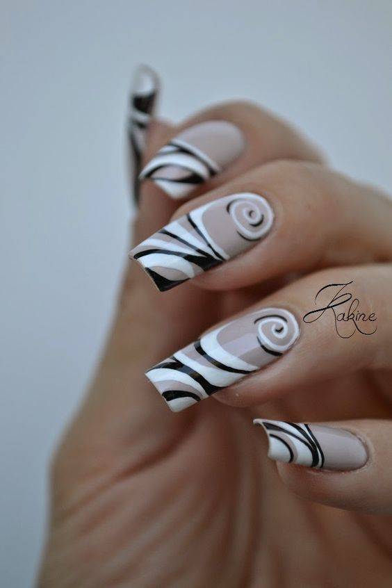 В отличии от коротких ногтей, нарощенные позволяют создавать невероятно красивые рисунки и целые картины. Поэтому одним из самых популярным является графический маникюр. То есть разного рода абстрактные рисунки
